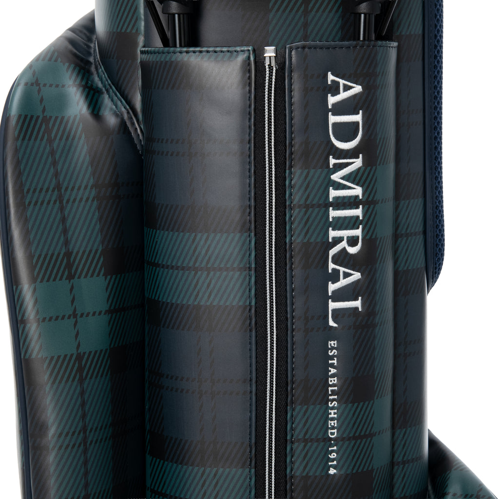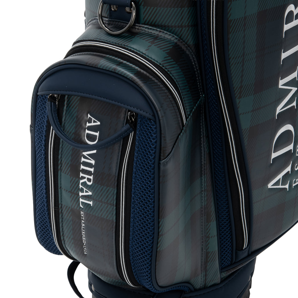 This stand-up caddy bag comes with a stand cover. The design is simple, but the combination of different materials adds an accent, with matte synthetic leather accented with mesh fabric. The embroidered logo adds a touch of luxury. The front pocket has a wide opening with a double zipper, allowing for one-handed access. The front body is equipped with glove tape. The opening has a 9-type, 5-section opening and a 3-section separator.