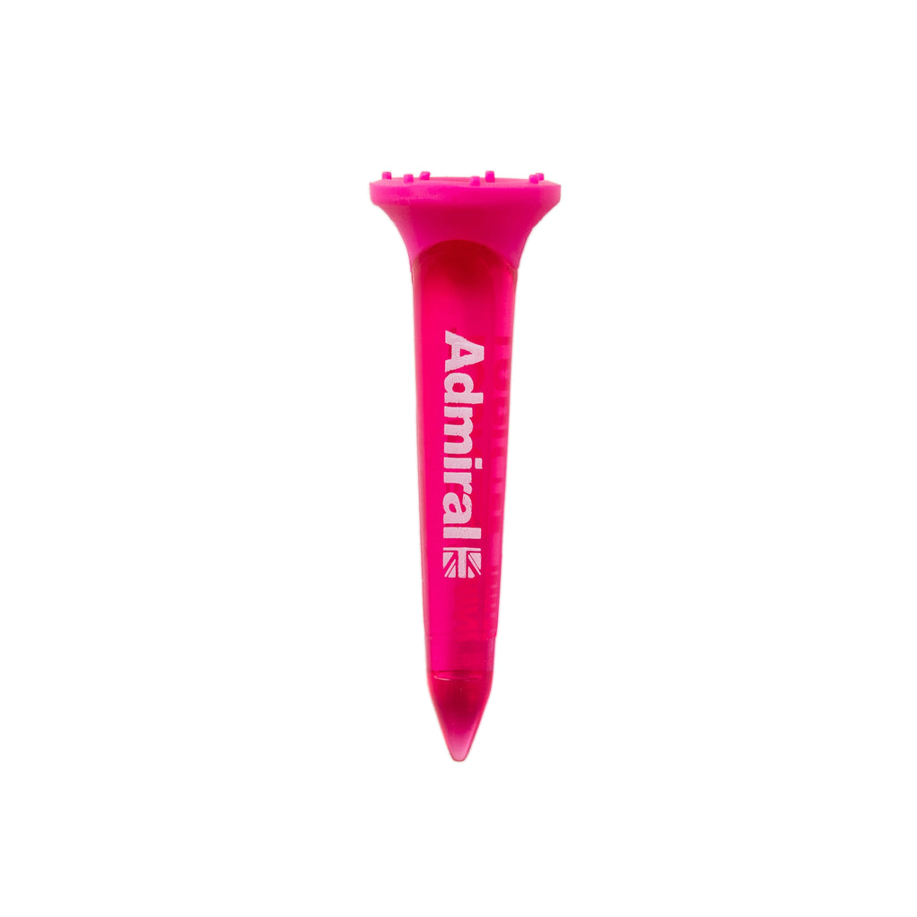 Each pack contains 5 tees. These pop neon colors stand out on the grass. They're less likely to break and more durable than wooden tees. The special cup shape makes it easier to place the ball on the tee, reducing stress during shots. The rubber cup reduces resistance, contributing to greater distance and stability. The protruding claws on the tip prevent the tee from popping out and making it harder to lose. They can also be used as a divot tool.