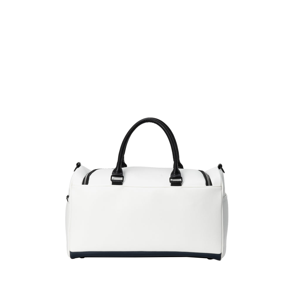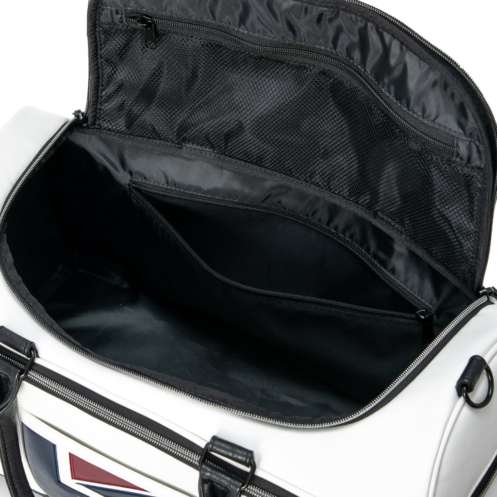 This sports model features a traditional logo and Union Jack. The top opening is U-shaped, allowing for easy access to your belongings. It has three exterior pockets for ample storage. There are also three interior pockets. It comes with a shoulder strap.