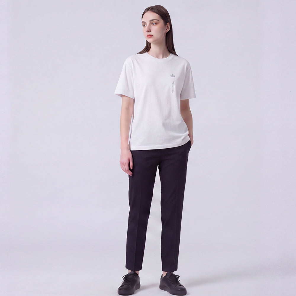 シンプルなデザインで着る人を選ばず、ON/OFF両用、1枚でもインナーでもスタイリング可能な究極な1枚。