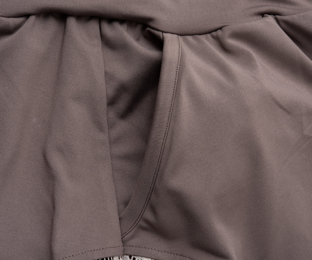These shorts have a flap design that looks like they're two layers deep, and lace on the sides, giving them an elegant and refreshing look.