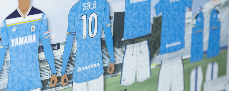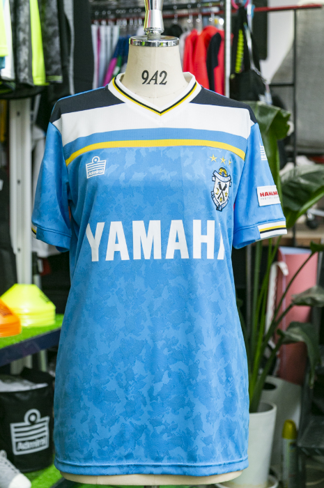 ユニフォームは、そのクラブのアイデンティティと強い意思を表現する重要なアイテム。象徴的なデザインを織り交ぜつつ、 勝つためのギアとしての機能性も追求されている。 ジュビロ磐田のキットは、シンプルですっきりとしたシェイプが特徴。 ジュビロの本拠地である静岡県と Admiralの故郷である英国のシルエットが 迷彩風の柄として落とし込まれている。 胸元にはサポーターとの絆を意味するイエローのライン。 ジュビロらしい優雅さと力強さを兼ね備えたスタイルが誕生した。