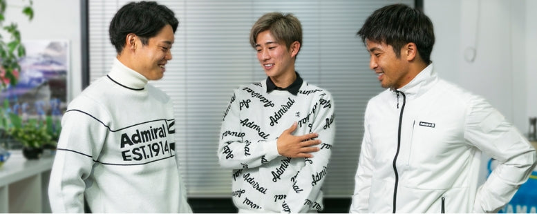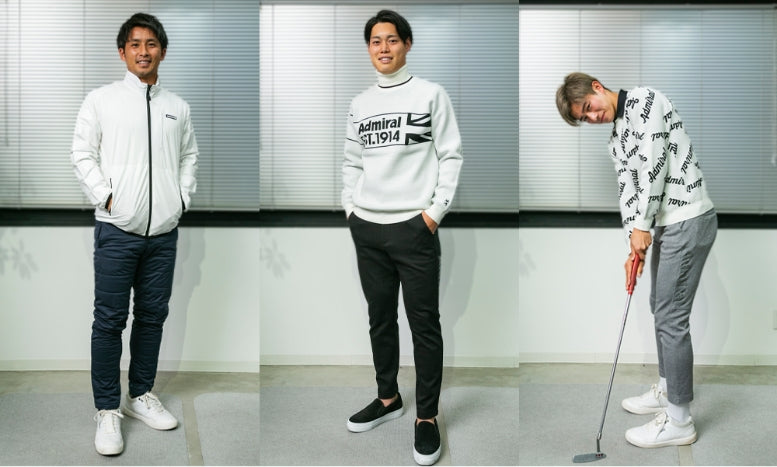 僕はゴルフをするので、Admiralのゴルフウェアをよく着ています。さっきも言いましたけど、ちょっとした柄とかデザインがすごくカワイイし、お洒落なのに機能性も高いんです。パンツは伸縮性が高くて動きやすいし、長袖のウェアやニットもカッコイイ。間違いなくプレーの助けになっていますね。