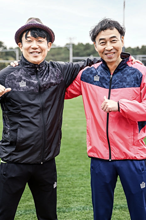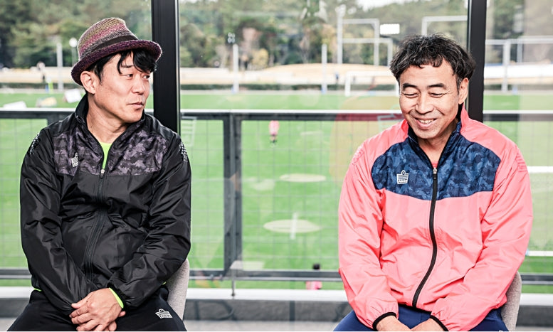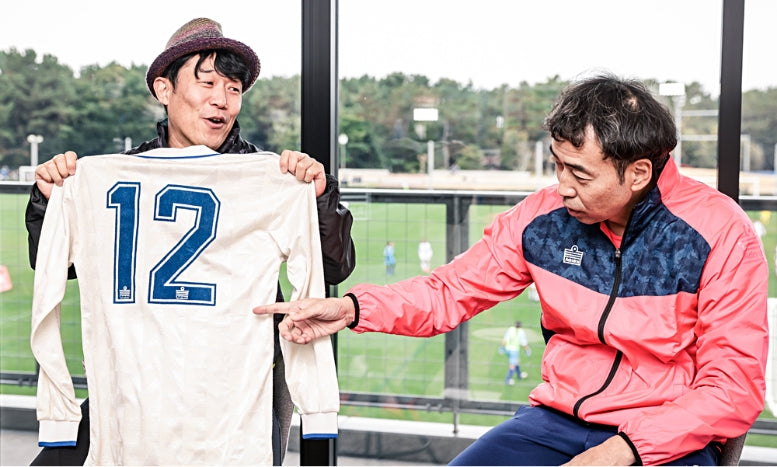 お二人が全国の舞台で大活躍されていた当時、今や高校サッカーファンなら知らぬ者のいないブルーのユニフォームの胸には、横書きの「市立船橋」の文字、そして、Admiralのロゴが輝いていました。今回は、ペナルティのお二人がAdmiralを纏ってフィールドを疾走していた「あの頃」のお話を、たっぷりとお聞かせいただきます。