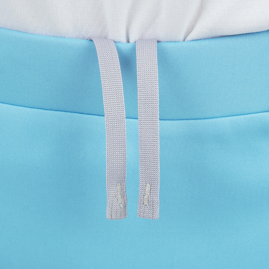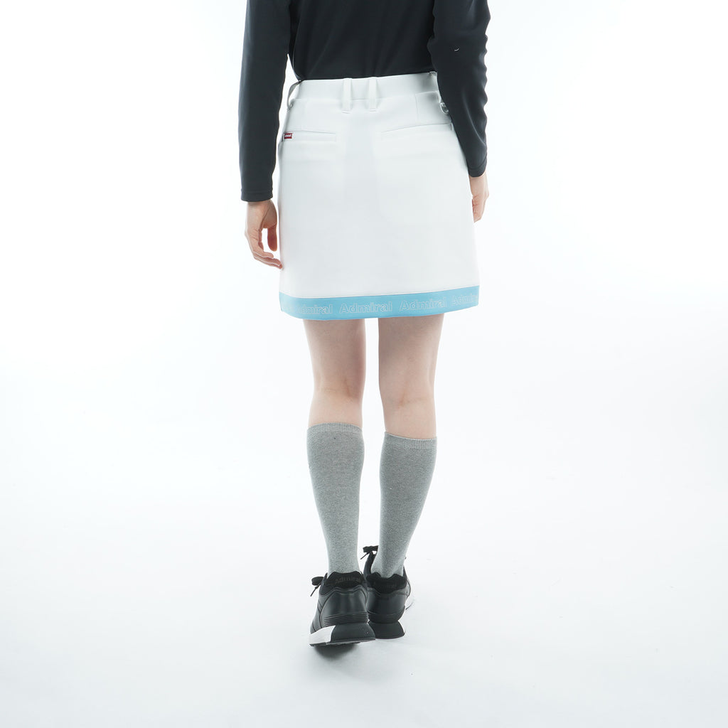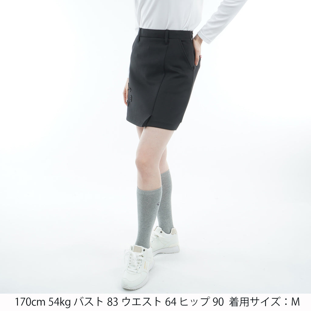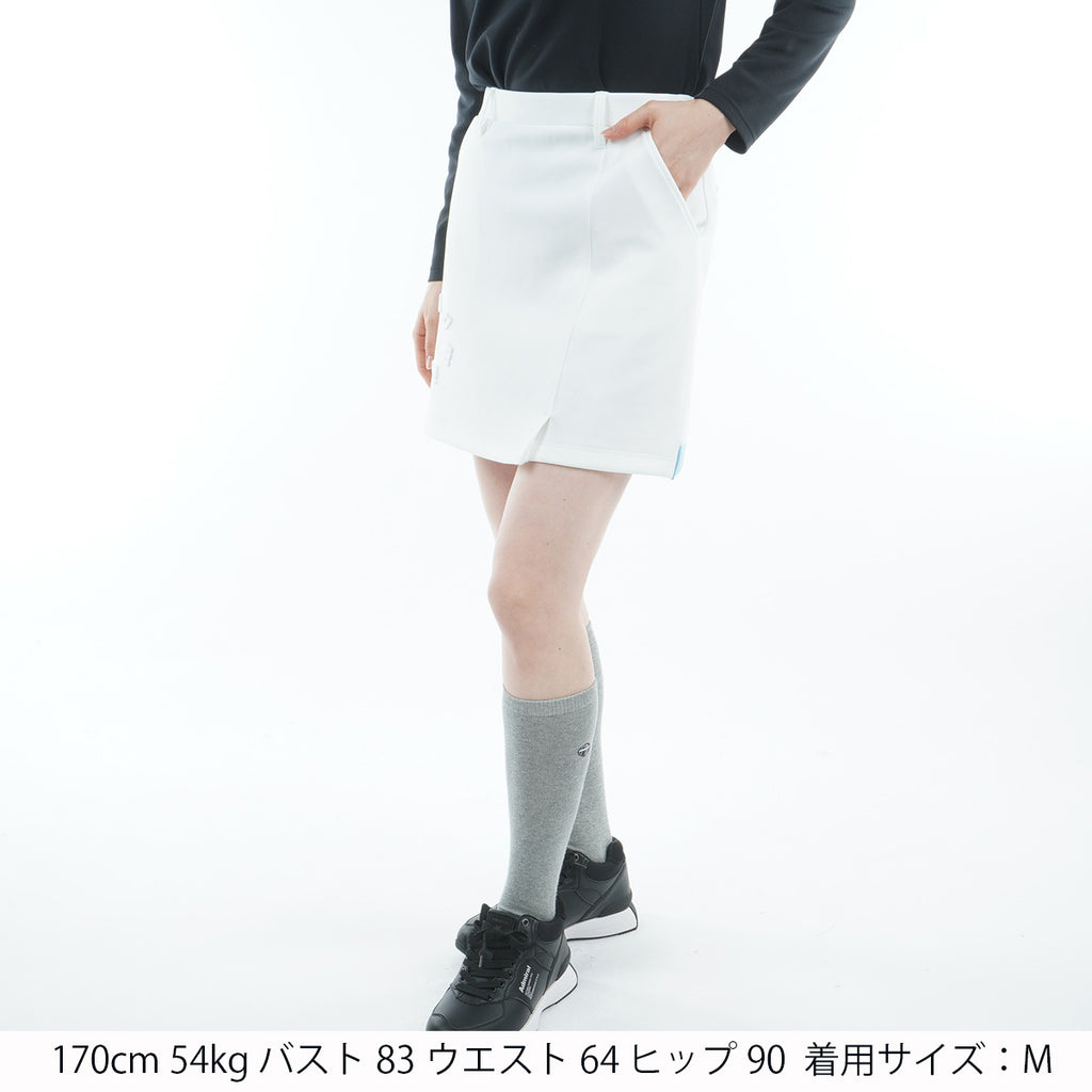 ストレッチ性ともっちりとした弾力感、空気層を含んだ程良い厚みのダンボールニットを使用。ウエストはストレスフリーなプルオンスタイル。スピンドルでサイズ微調整が可能です。フロントはスウィング時のめくれが気にならないラップ風の切り替え。フロントはエンボスのサークルロゴ、バックヘムは配色とドットロゴ、シンプルになりやすいバックスタイルにアクセントをおくことでスカート単品でのコーディネートのし易さもポイントです。