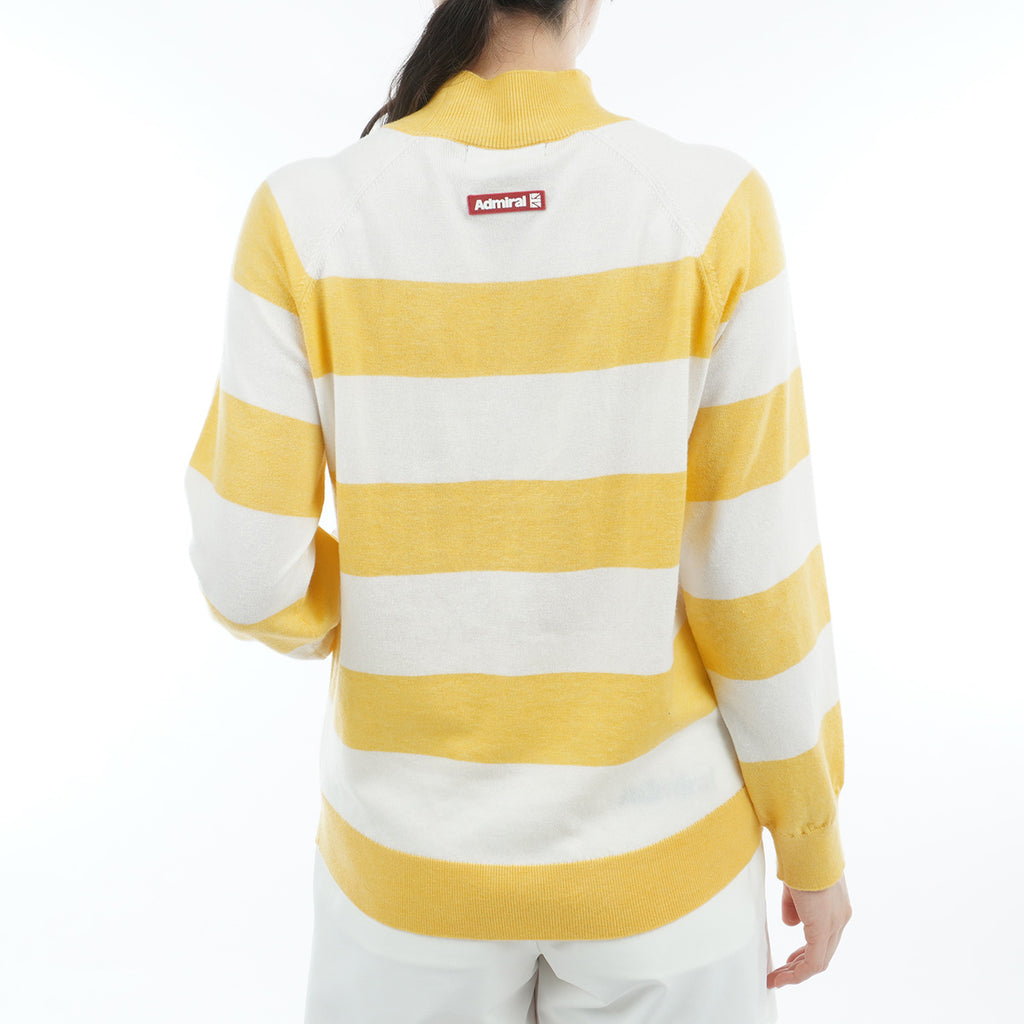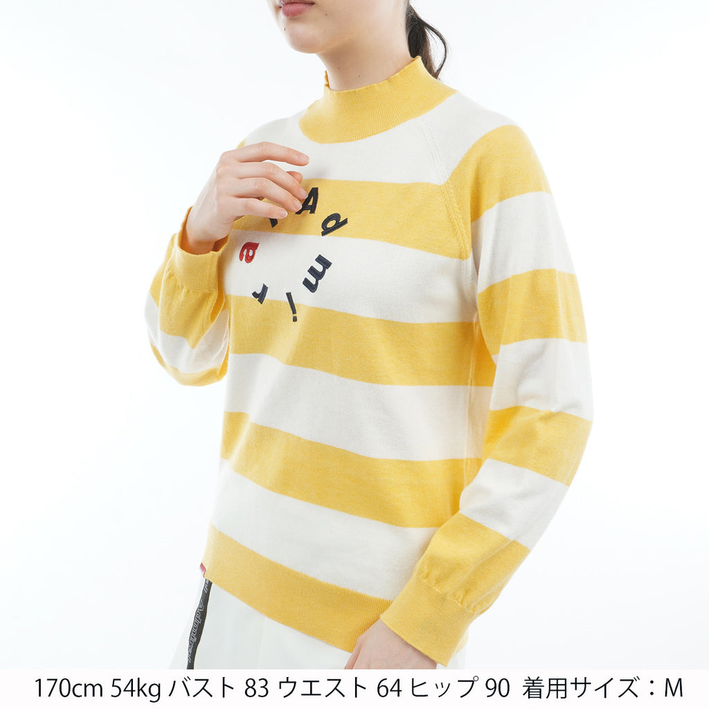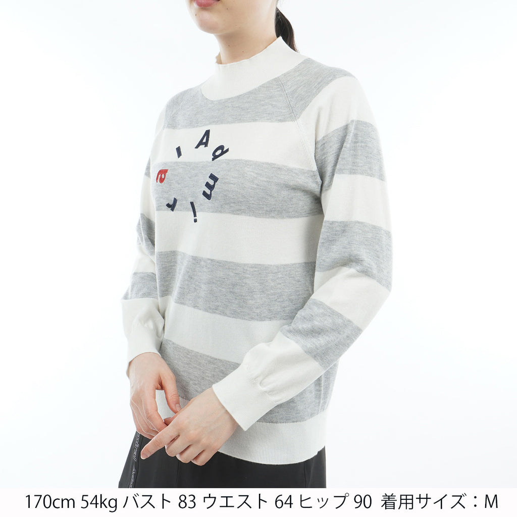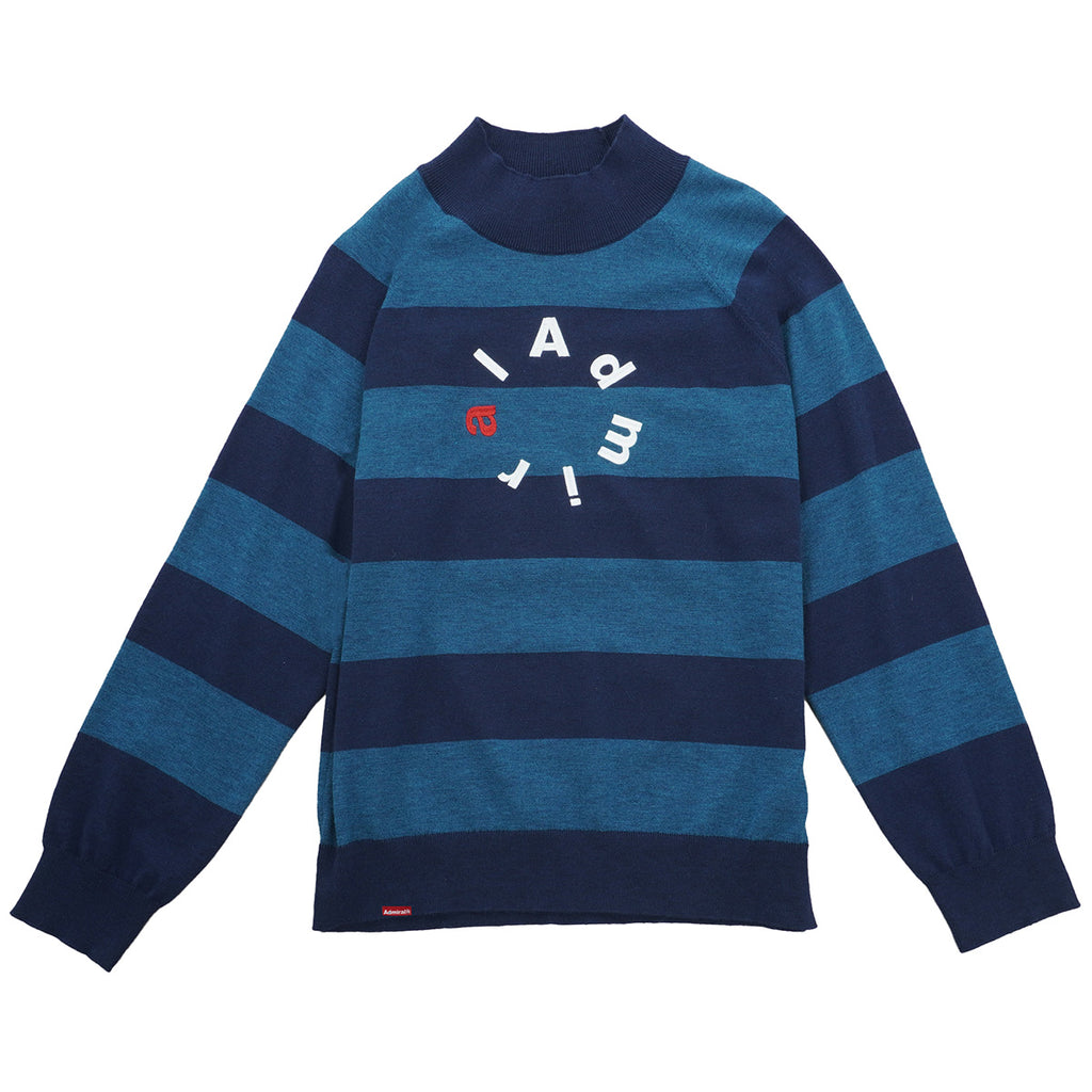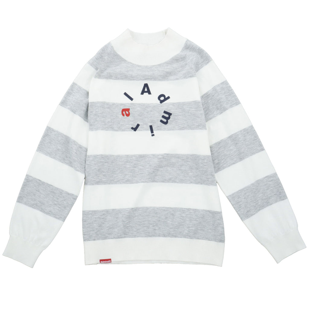 太陽光を利用した新たな蓄熱保温素材【ホカタッチ】糸を使用。ワイドボーダーとトリコロールのサークルロゴ刺繍がブリティッシュ感のあるデザイン。衿は高さのあるハイネックで首元を暖かくサポートします。
