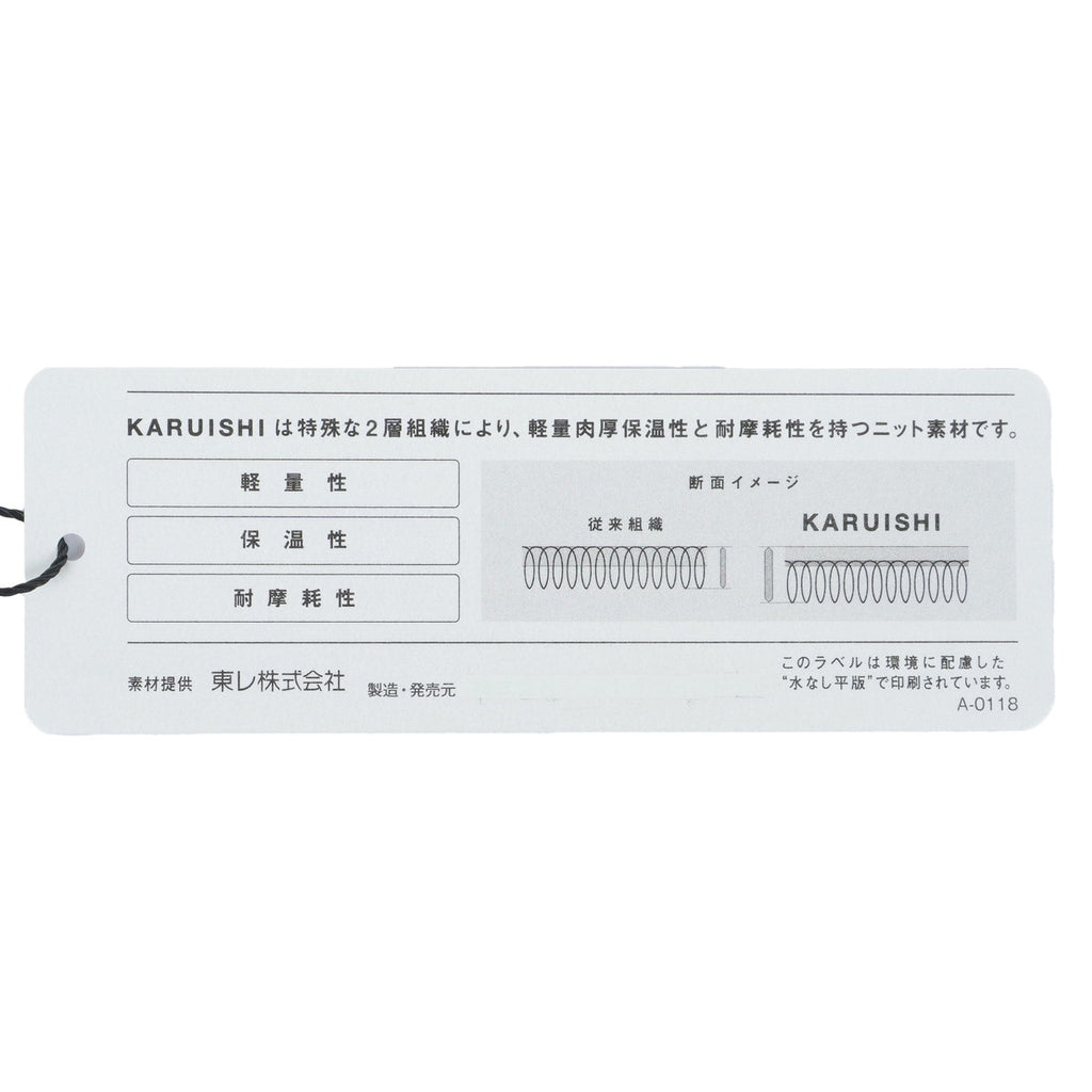 特殊な二層組織により、光沢感と耐摩耗性に優れた【KARUISHI】を使用。裏面は起毛加工で暖かく、もっちりとした肉厚感がありながら、驚くほど軽いのが特徴です。衿はリブ仕様で薄く伸縮性のある仕様。寒い季節にもプレイできるトップスとしておすすめです。胸には配色を効かせたロゴプリントがポイントです。
