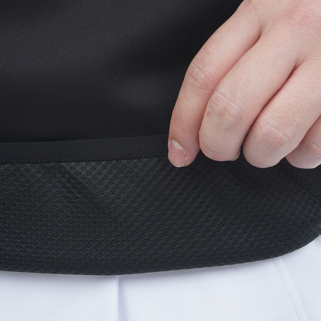 ストレッチ性ともっちりとした弾力感、空気層を含んだ程良い厚みのダンボールニットを使用。表面は上品さのある微光沢、スウィング時の引っかかりを軽減する肌滑りの良さもポイントです。