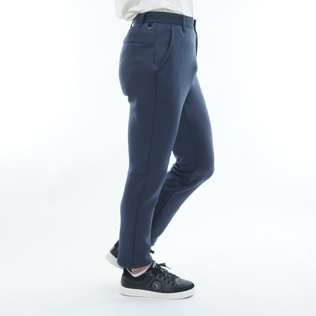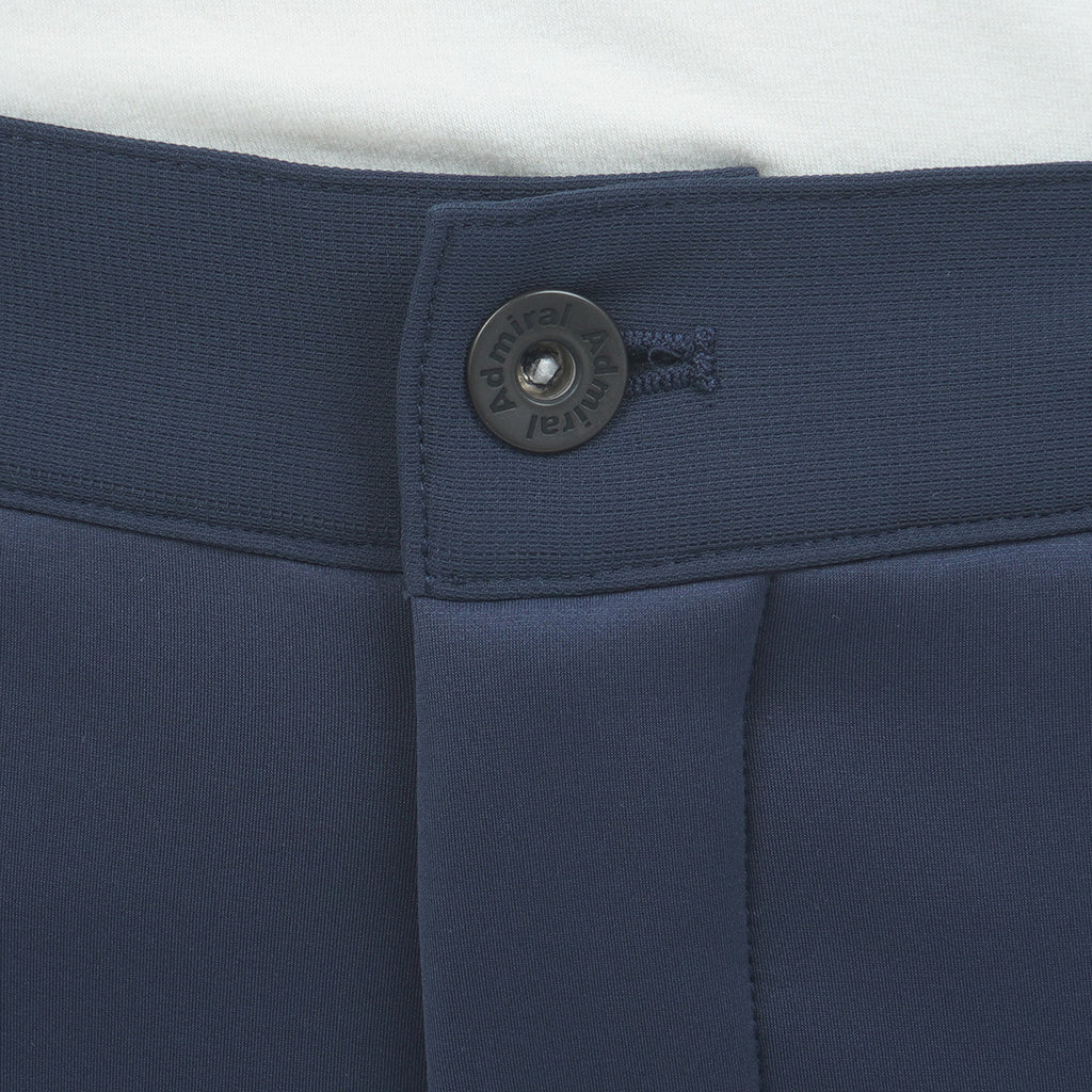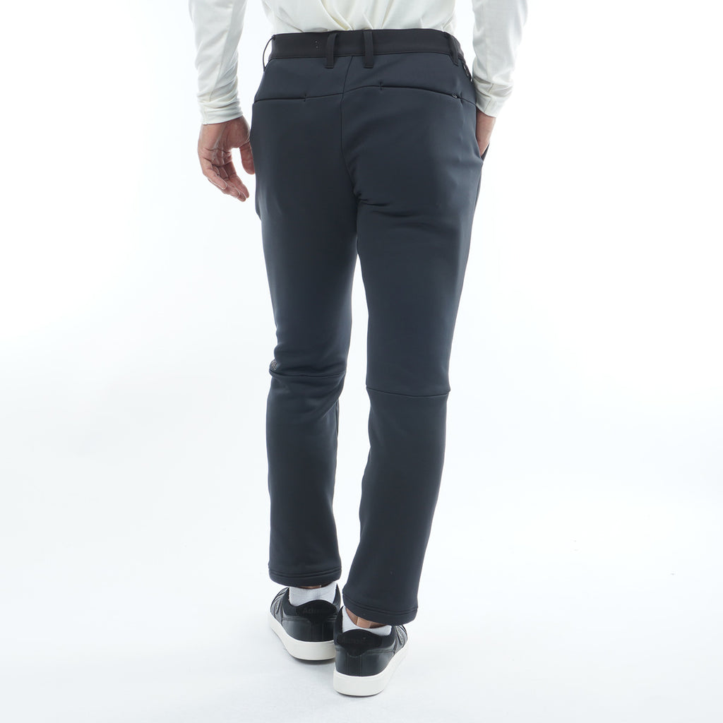 膝部分を切り替えた、少し立体感のあるシルエット。ウエスト部分は分厚くなり過ぎないように布帛素材を使用しています。