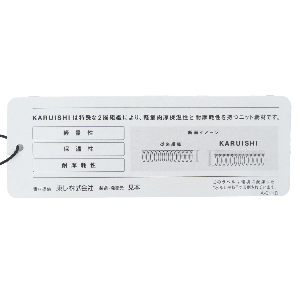 特殊な二層組織により、光沢感と耐摩耗性に優れた【KARUISHI】を使用。裏面は起毛加工で暖かく、もっちりとした肉厚感がありながら、驚くほど軽いのが特徴です。