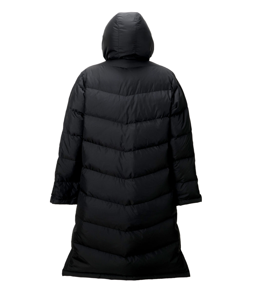 冬の移動時や、レジャーにも適した中綿ロングコート。
