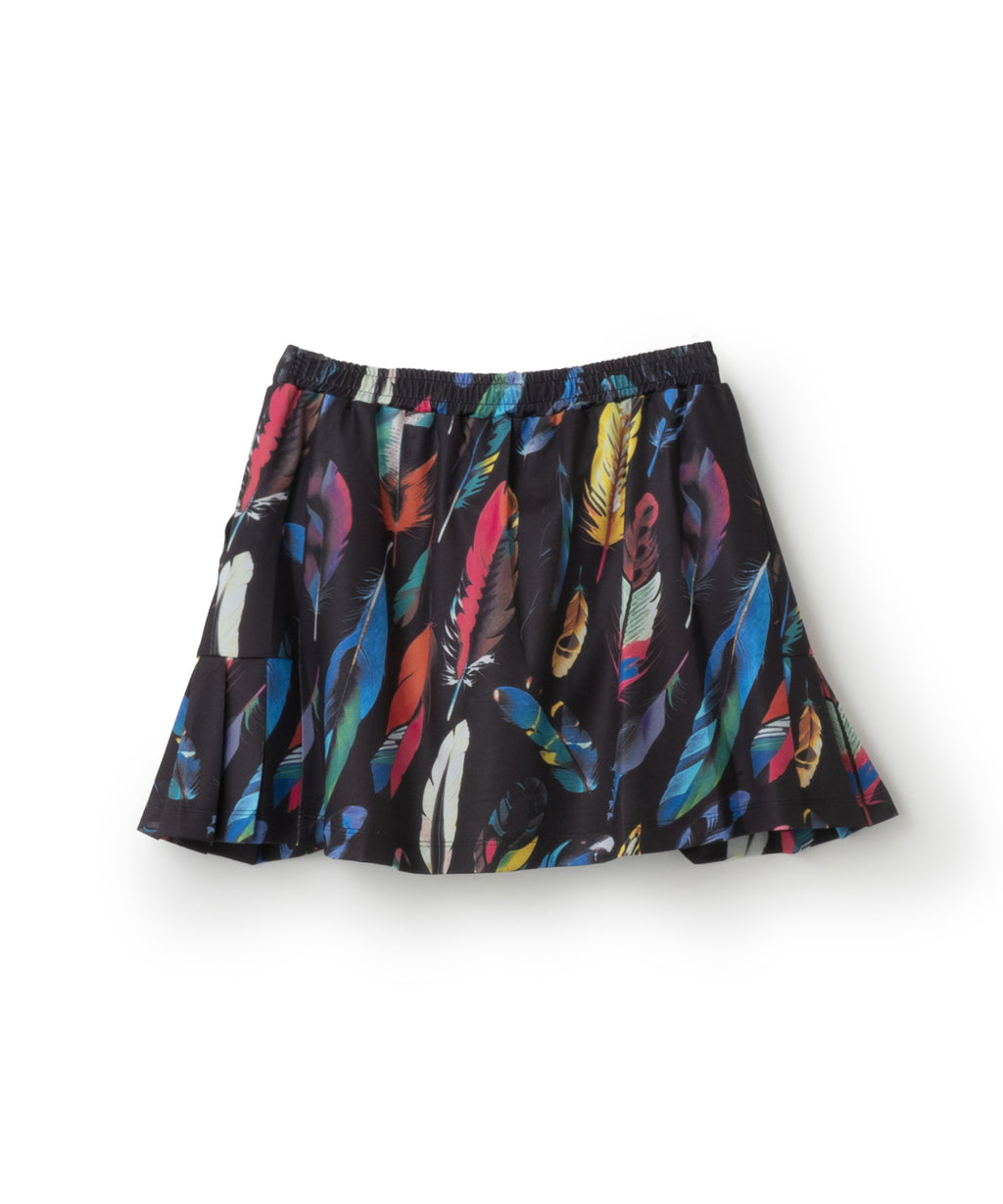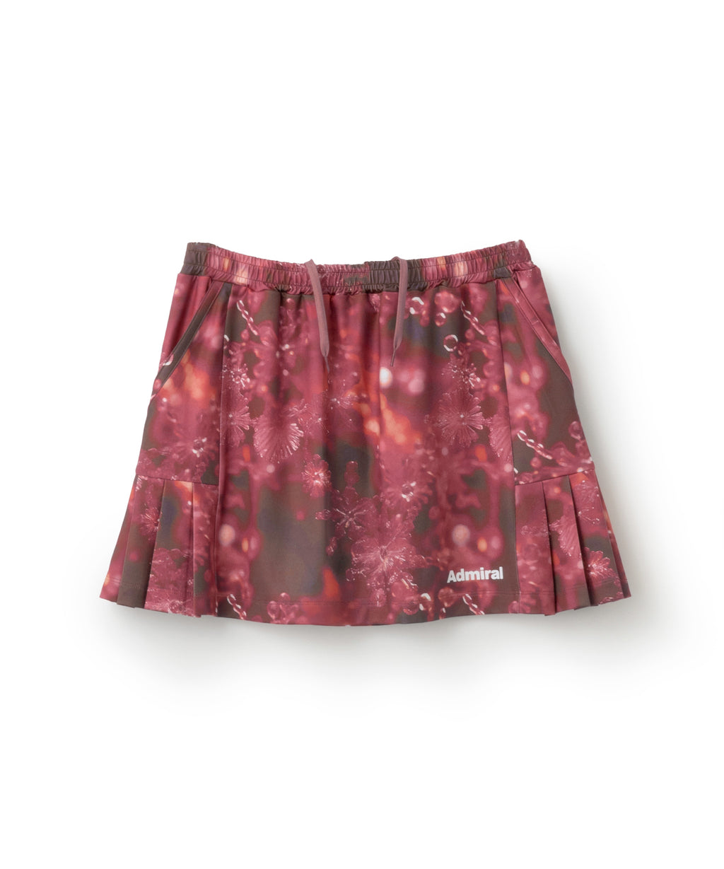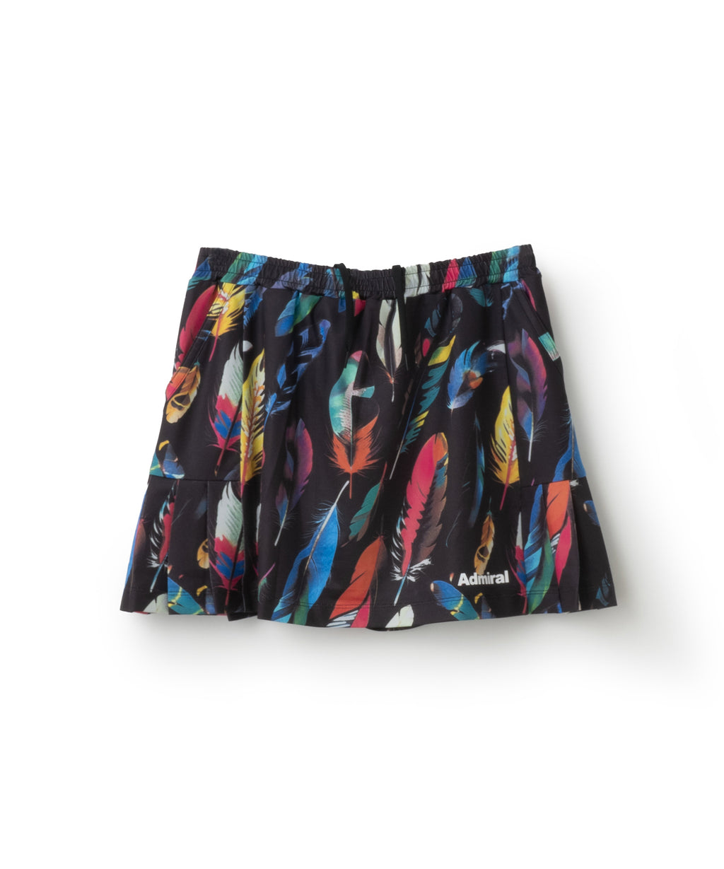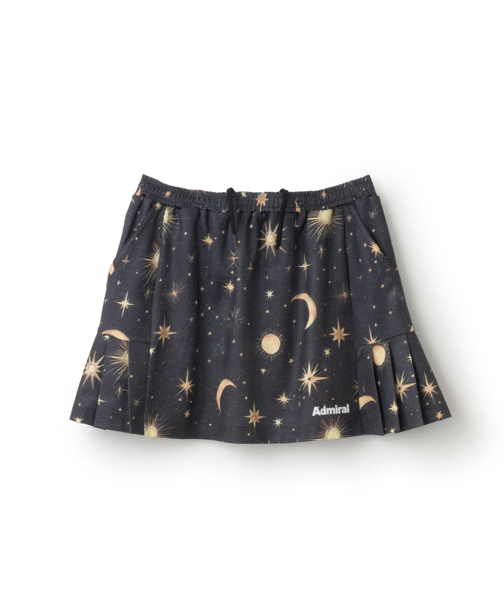 人気のスコートが総グラフィックバージョンとして登場。フレアシルエットに 控えめにプリーツを施した、フレアとプリーツのいい所どりデザイン。 定番の機能性ストレッチ天竺素材を使用。両脇ポケット、ウエスト紐調整有り。