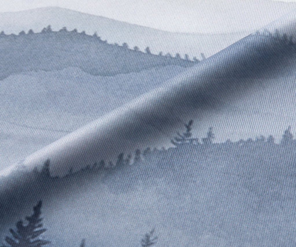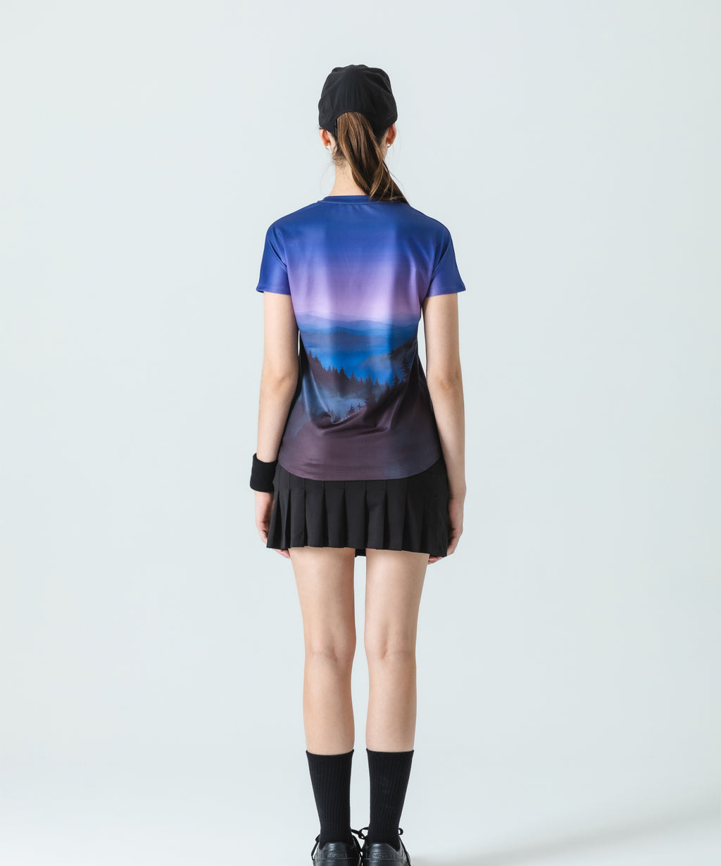 ・シーズンコンセプトである”夜明け”を象徴する、空と大地のグラデーショントーンの総柄Tシャツ。・総柄を活かした、袖に接ぎ目のないドルマンスリーブ仕様。 ・シーズングラフィックアイテムと同様の機能性ストレッチ天竺素材を使用。