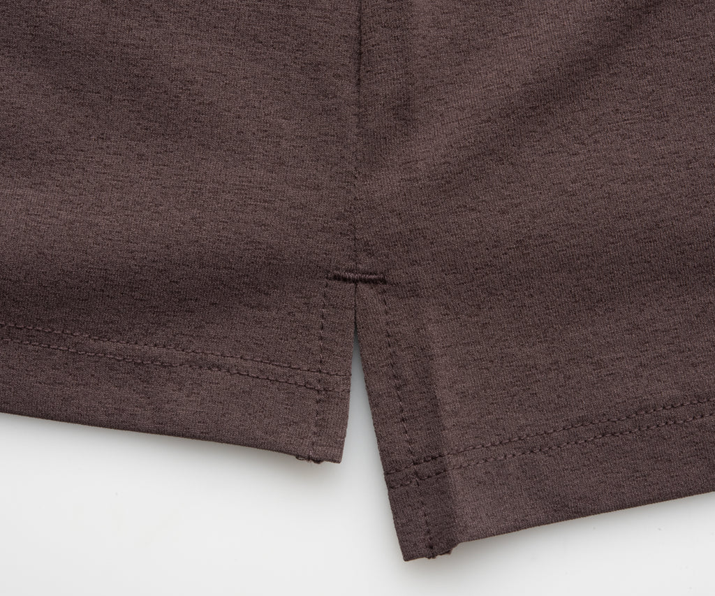 両裾のスリットデザインでシンプルな定番長袖Tシャツ。 吸水速乾性に優れたコットンライクで柔らかい風合いと素朴なハリ感のある伸縮素材。