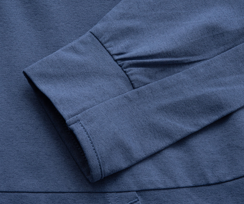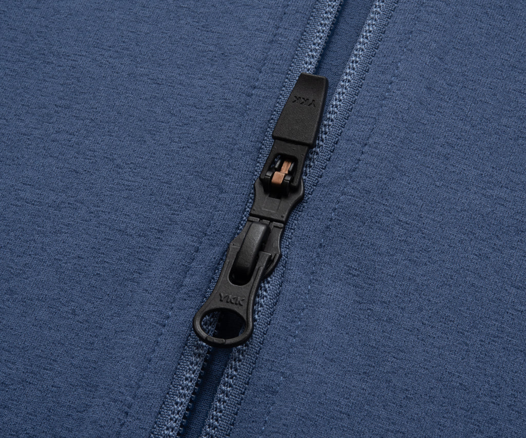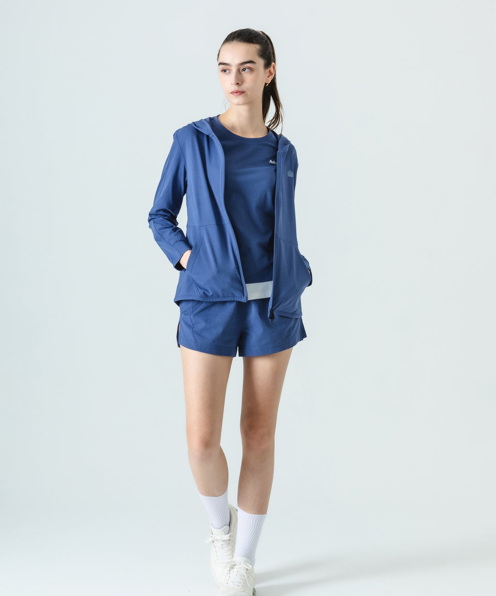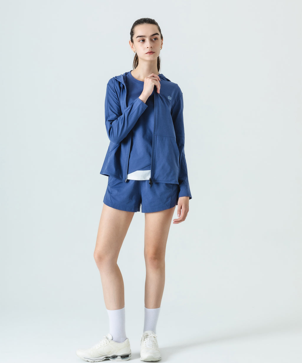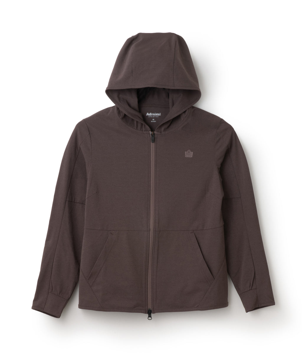 構築的な切替デザインのジップパーカー。バストダーツを入れ立体的なシルエットを演出。 吸水速乾性に優れたコットンライクで柔らかい風合いと素朴なハリ感のある伸縮素材。 3パネルフード、前ポケット有り。
