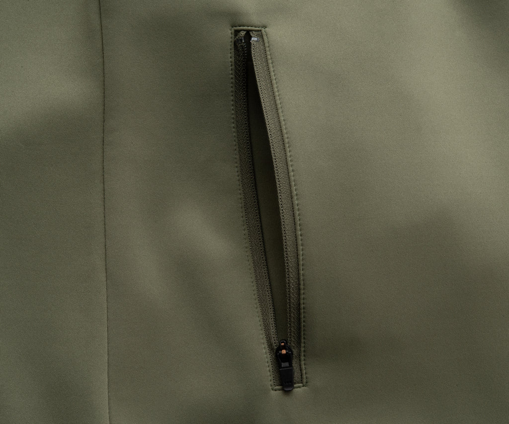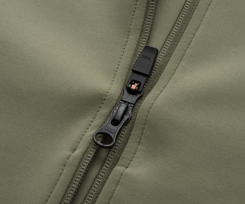 ・ハイネックファスナー開閉時の顔周りの挟み込みを防ぐチンガード有り。