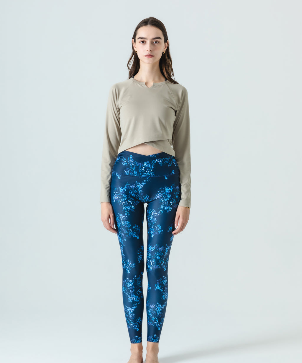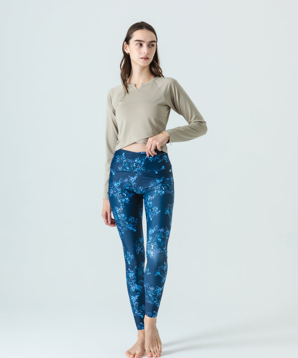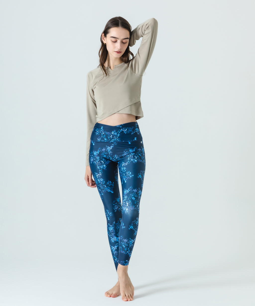・ウエスト辺りをクロスしたパターンで引き締め、くびれ位置を強調する美シルエットを再現するフルレングスレギンス。