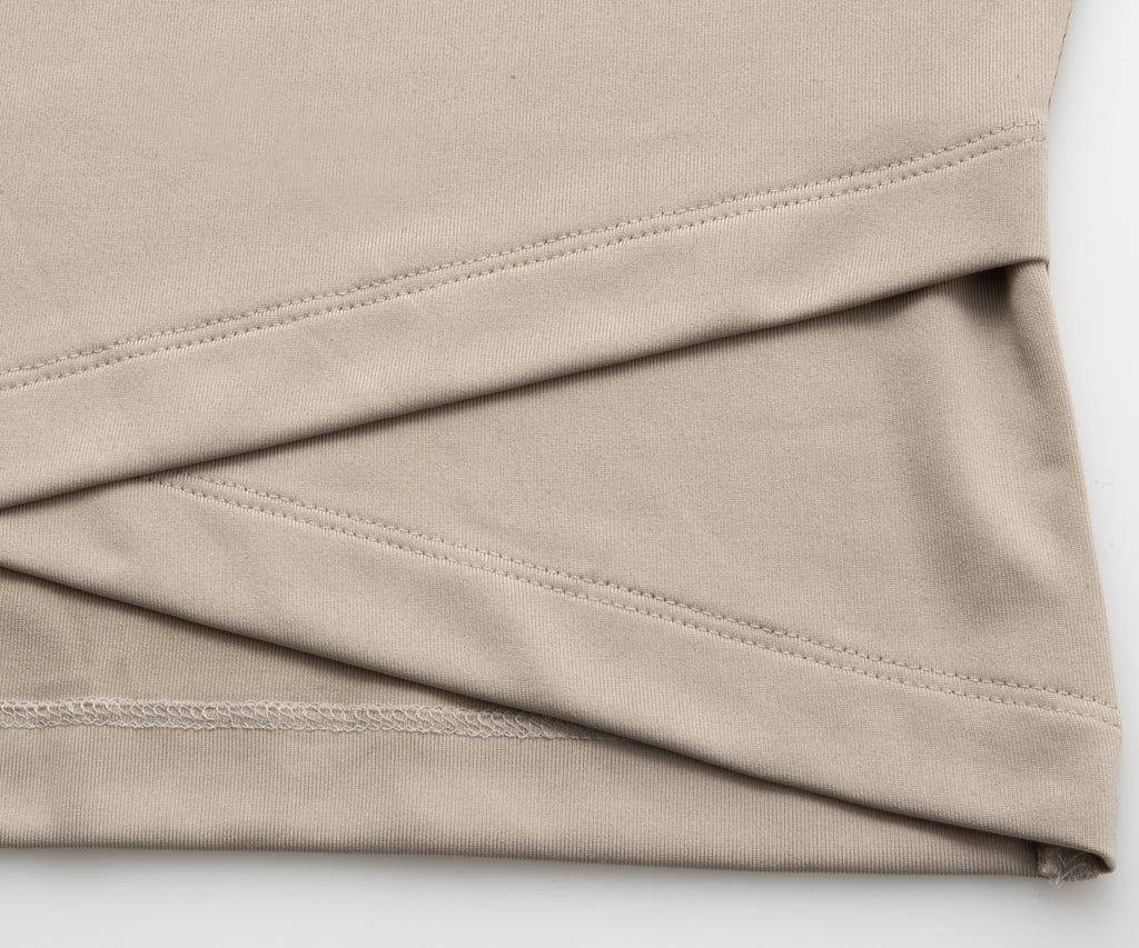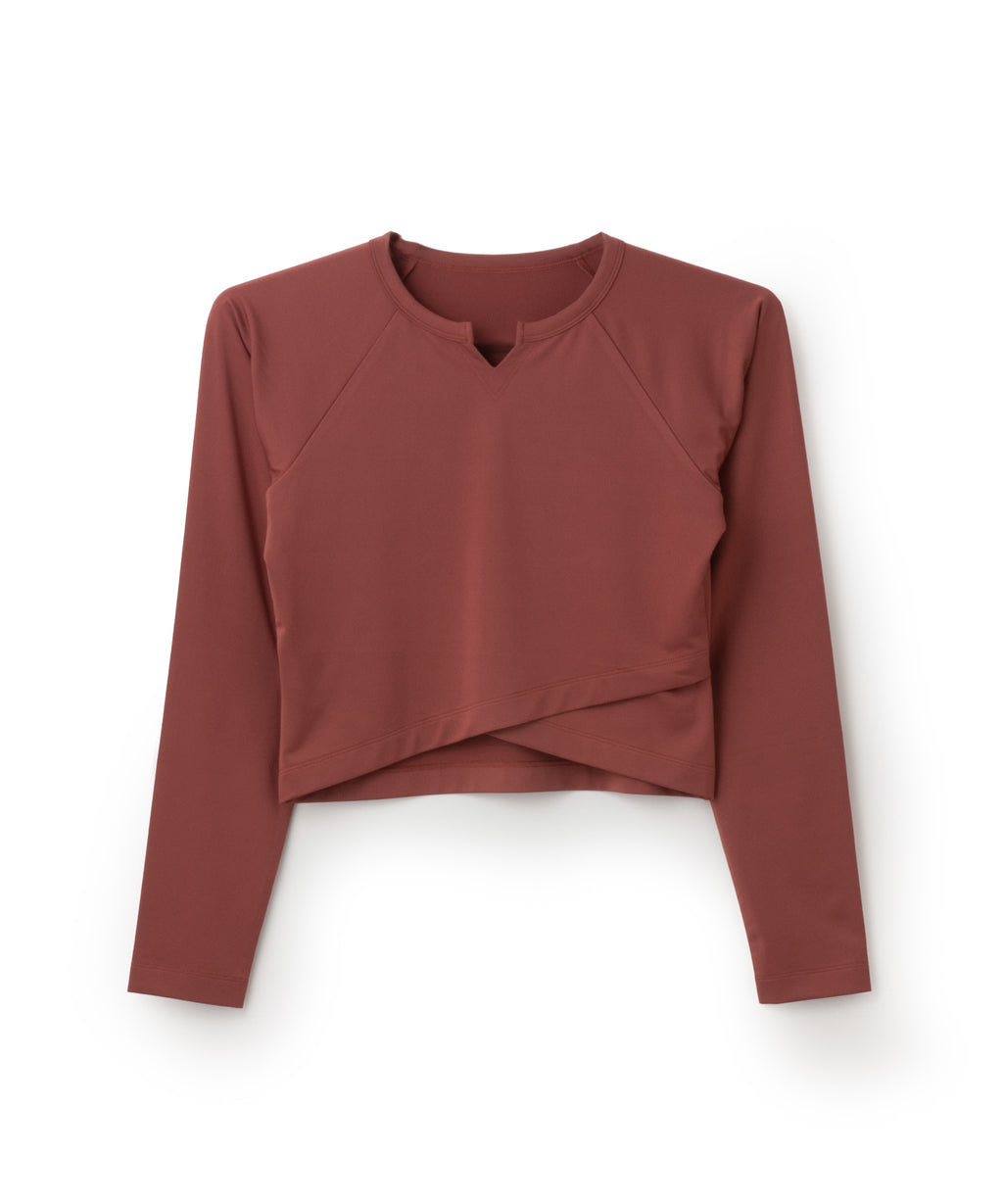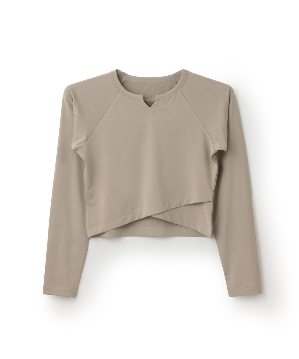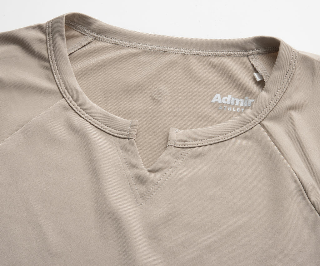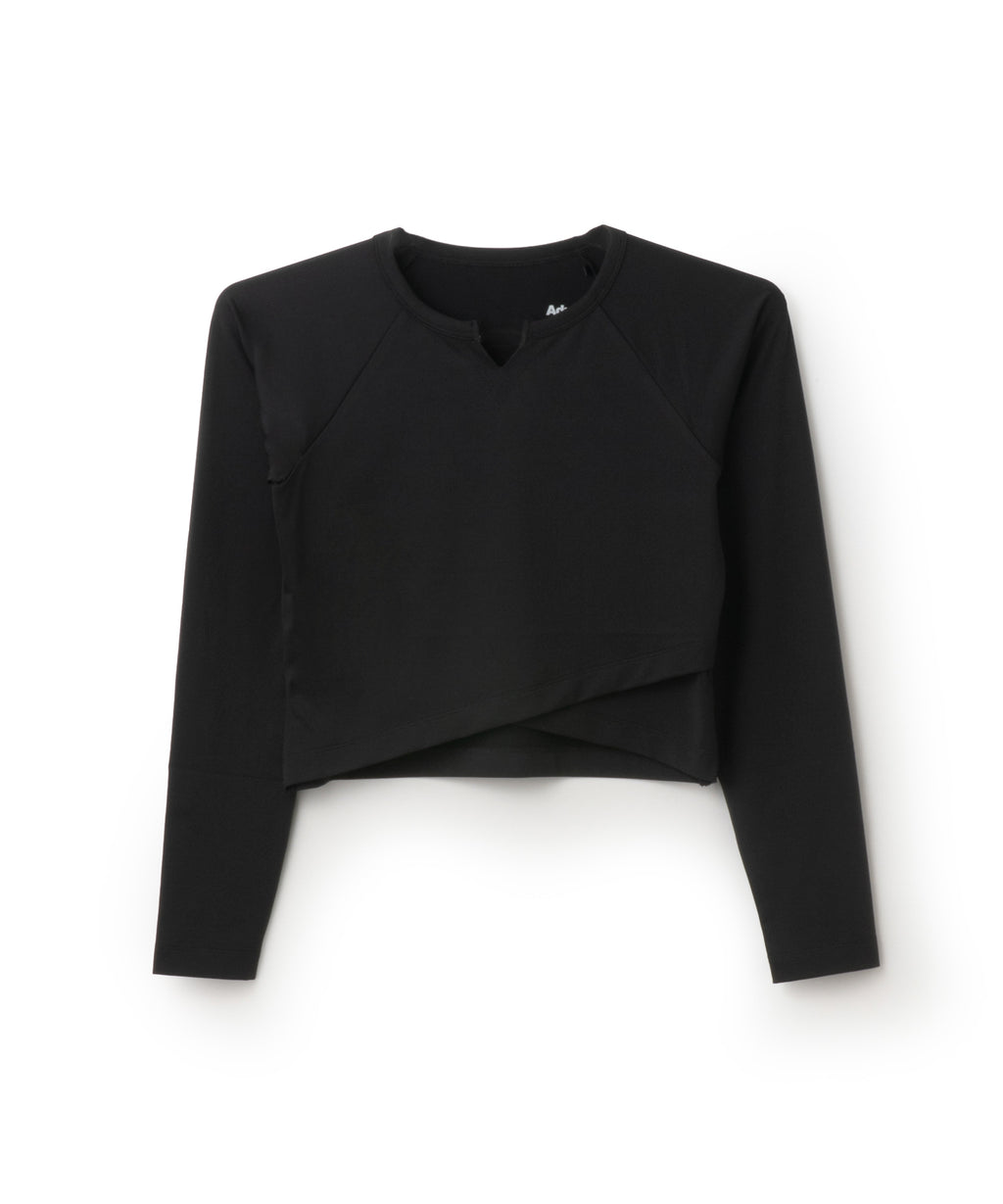 ・薄手でも透けにくく、抜群の伸縮性をもつアドミラルの定番カットソー素材で ストレスフリーにアクティブな動きをサポート。 ・裾のクロスデザインがシンプルな単色アイテムのアクセントに。 ・小さな切り込みが入ったようなノッチネックラインが首長効果を演出。