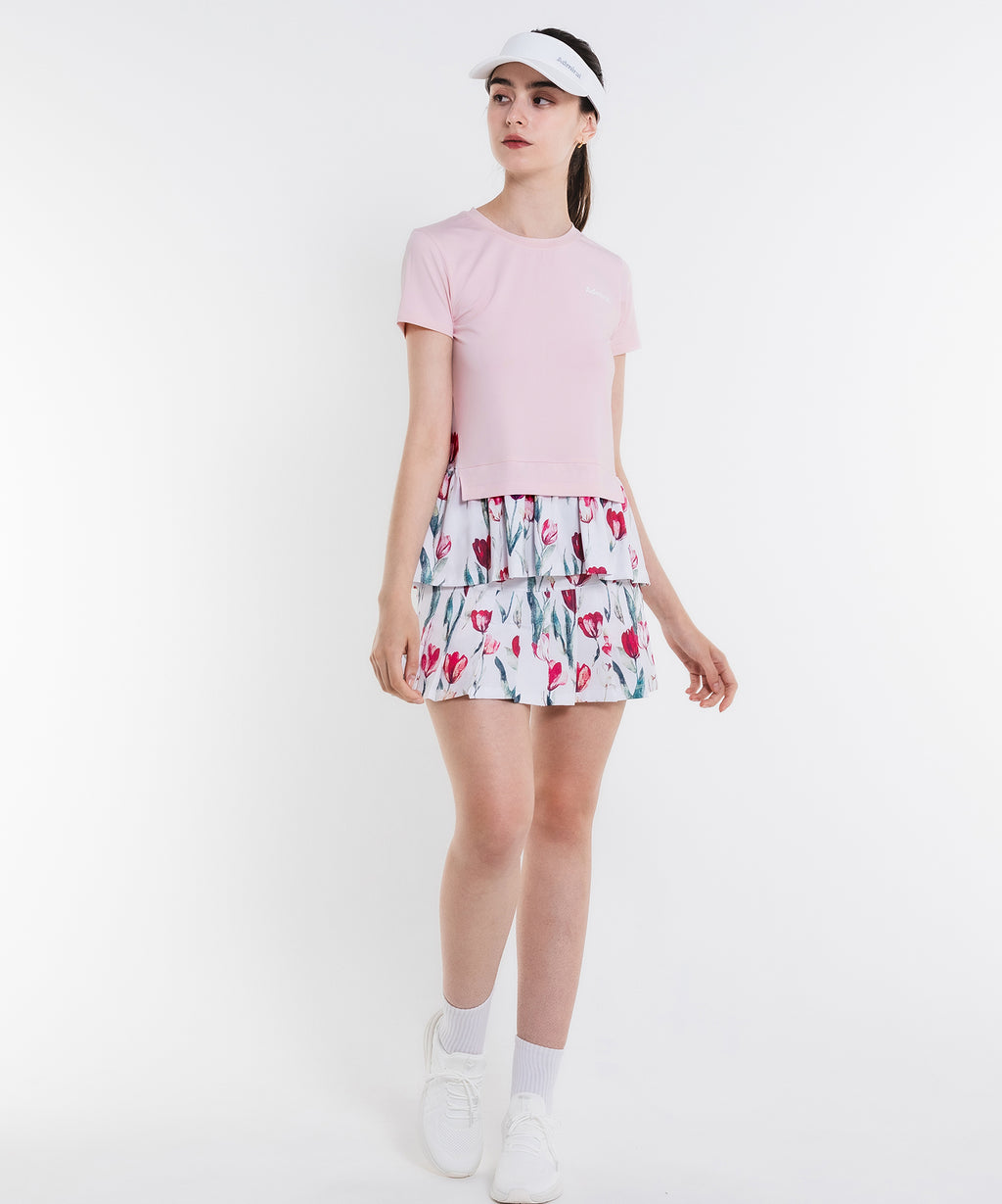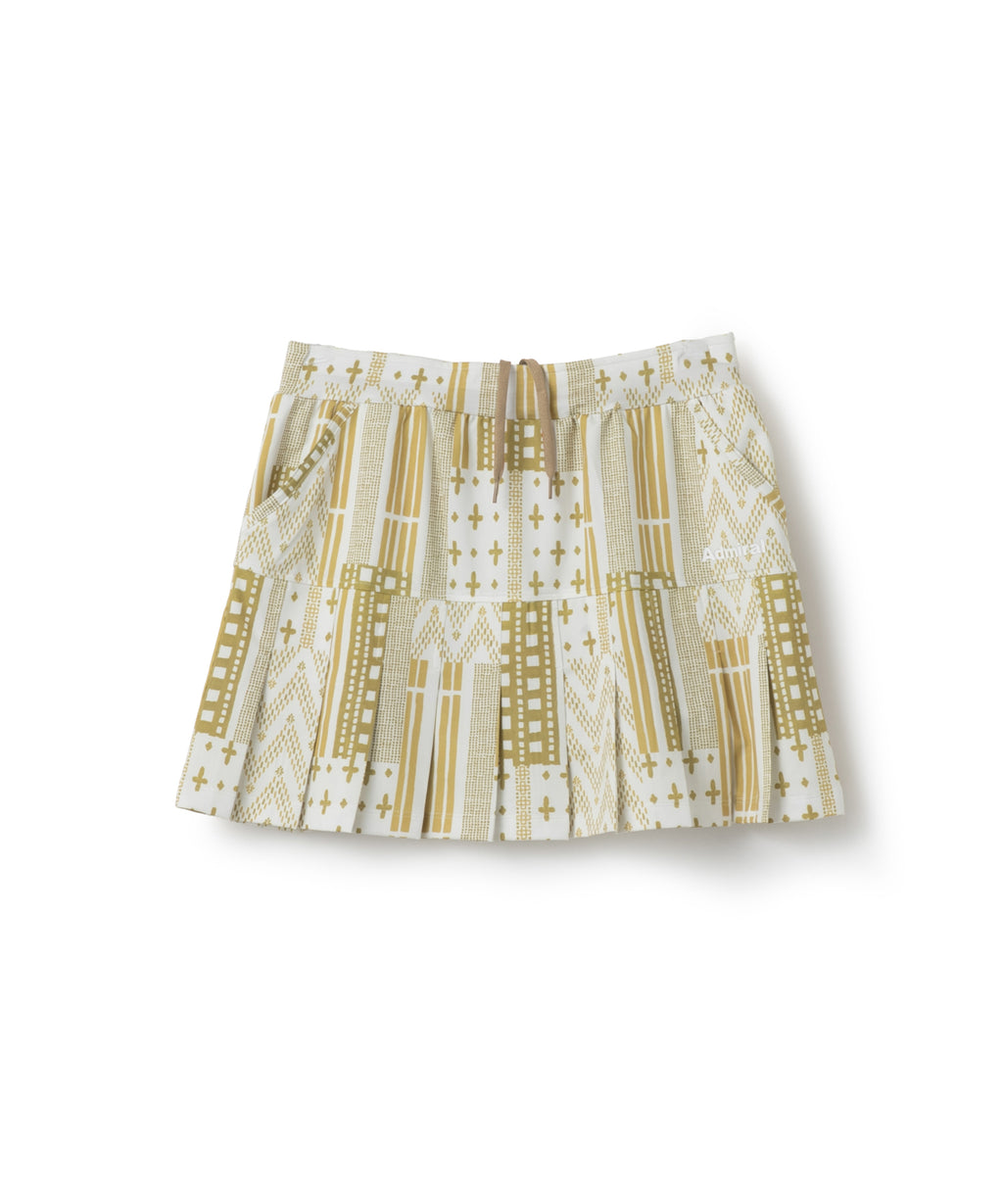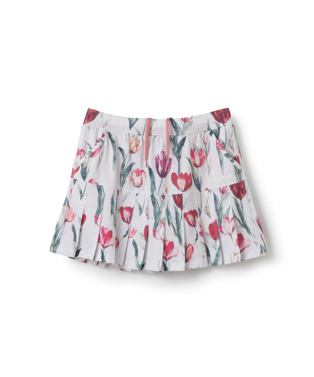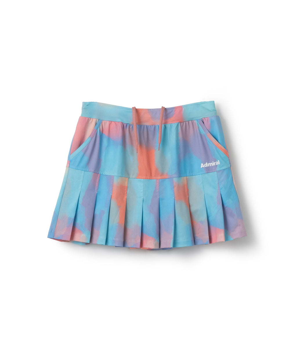 定番のプリーツスコート。ヒップラインから下がプリーツになることで、広がりすぎない上品な動きのあるシルエット。吸水速乾とUVカットの機能を持ちながら、とろみのある抜群の伸縮性でしなやかな着心地を実現する定番のストレッチ天竺素材を使用。両脇ポケット、ウエスト紐調整有り。