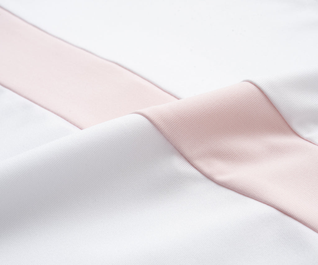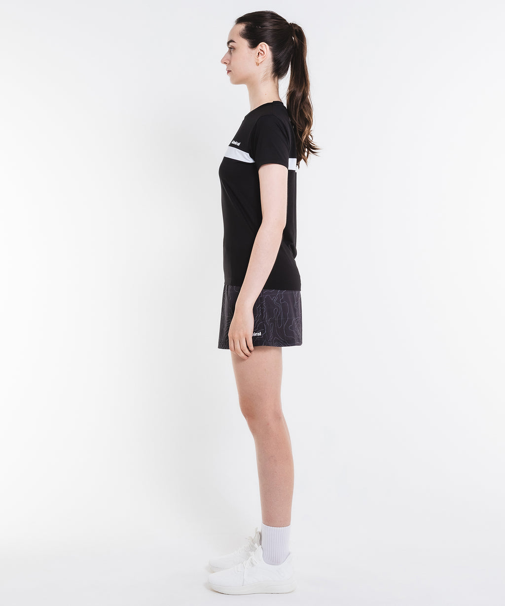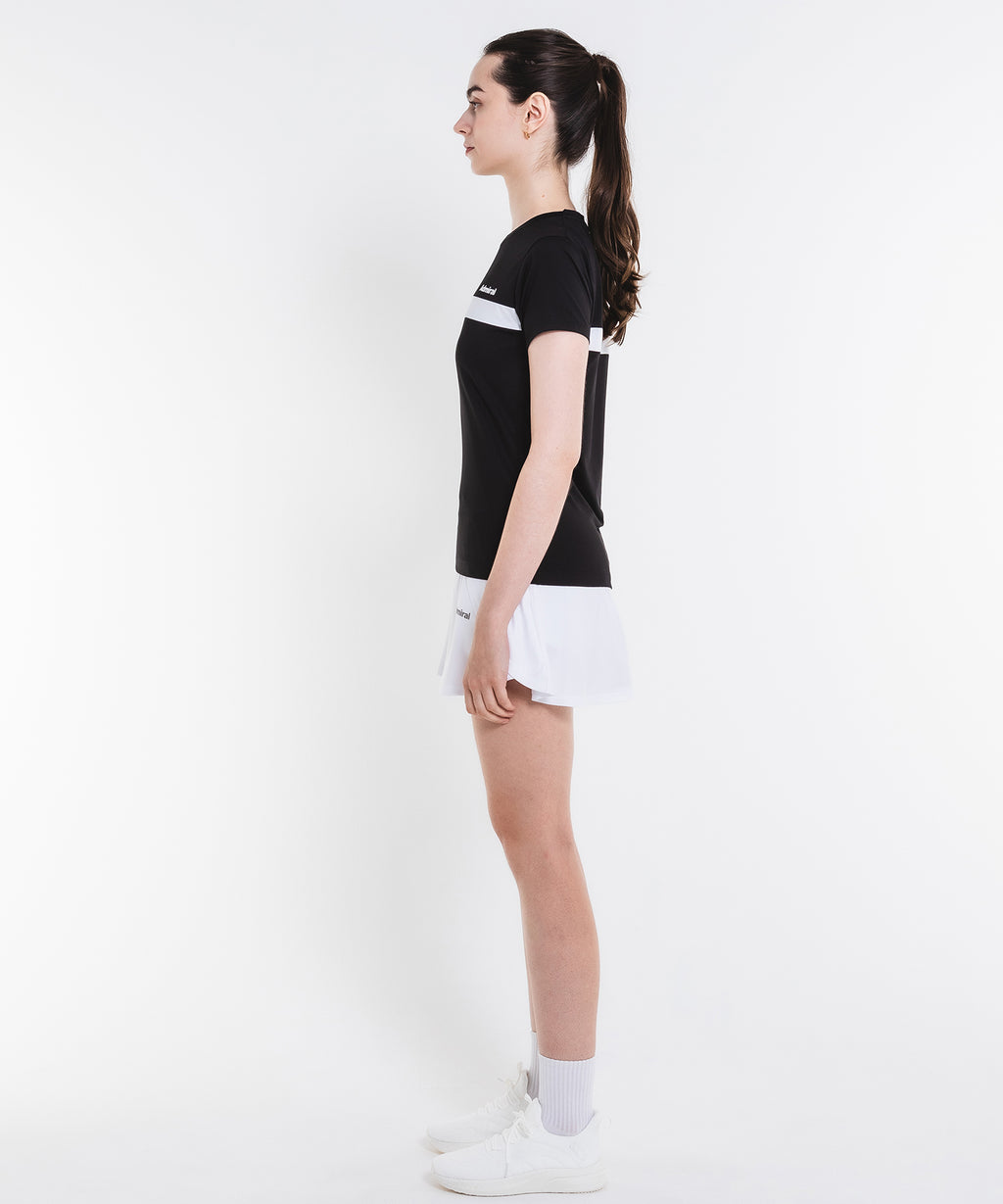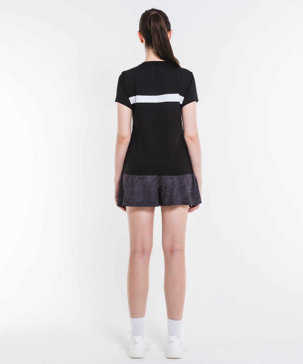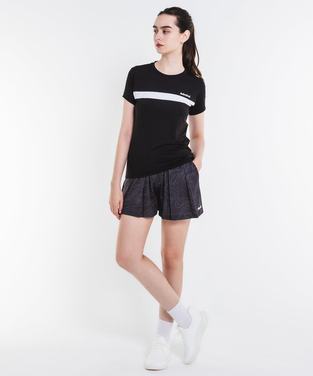 フロントのシンプルな細ライン切替の無地ベースのバイカラーTシャツ。吸水速乾とUVカットの機能を持ちながら、とろみのある抜群の伸縮性でしなやかな着心地を実現する定番のストレッチ天竺素材を使用。