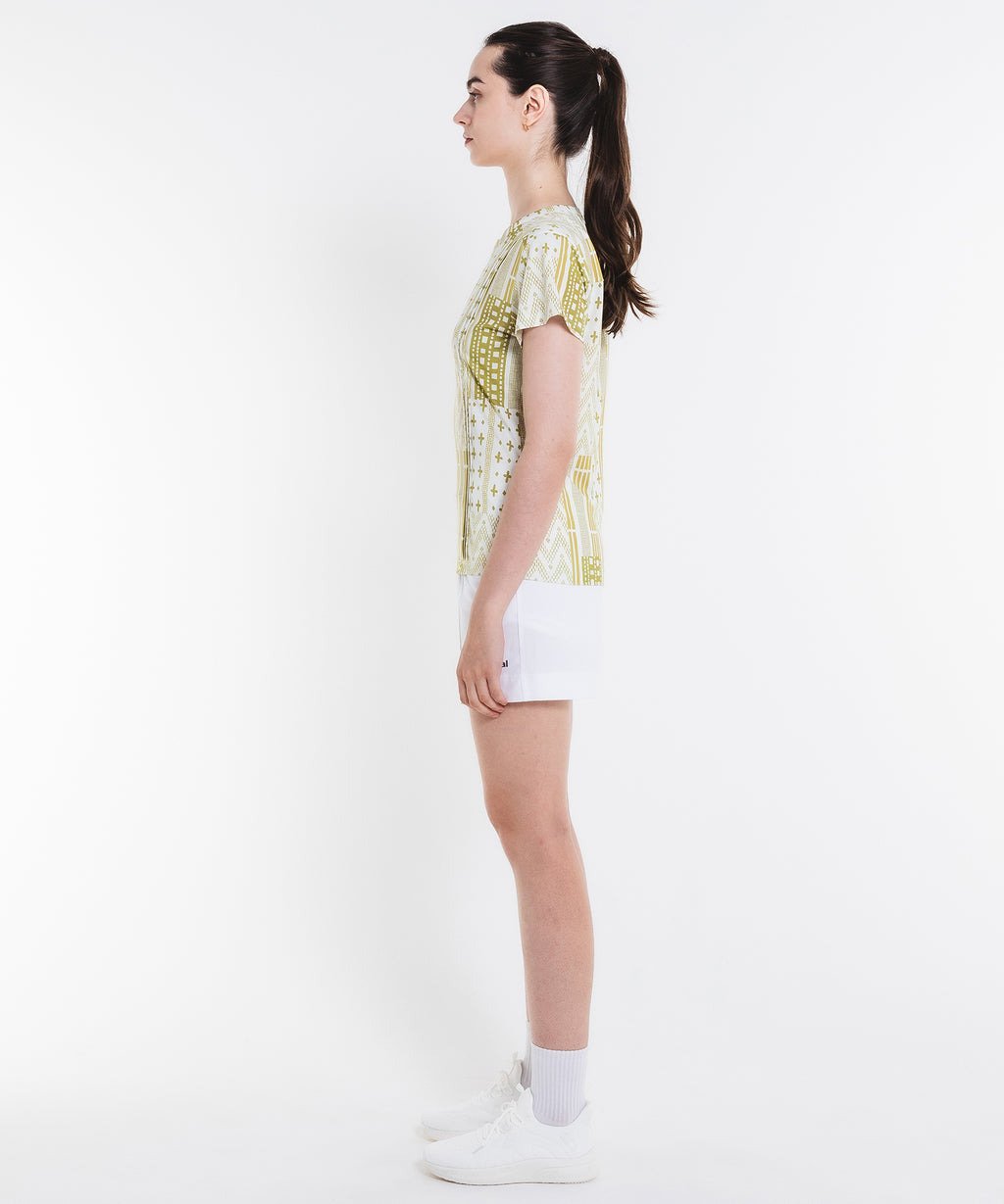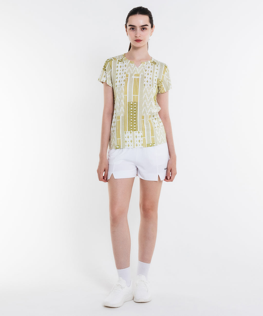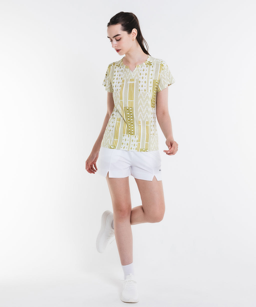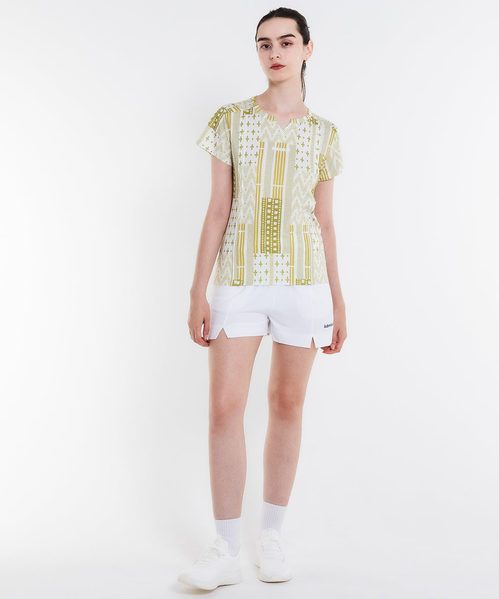 シンプルながら前裾のスリットが脚長効果のあるデザインのショーツ。吸水速乾とUVカットの機能を持ちながら、とろみのある抜群の伸縮性でしなやかな着心地を実現する定番のストレッチ天竺素材を使用。両脇ポケット、ウエスト紐調整有り。