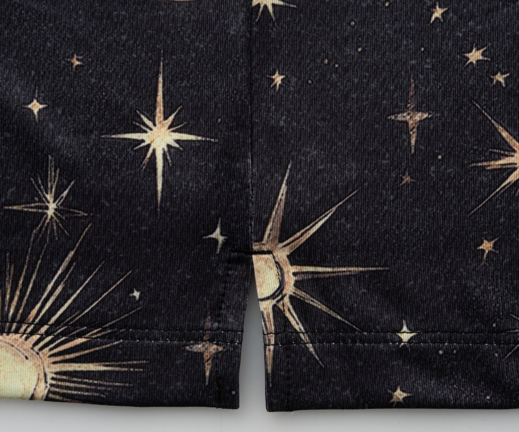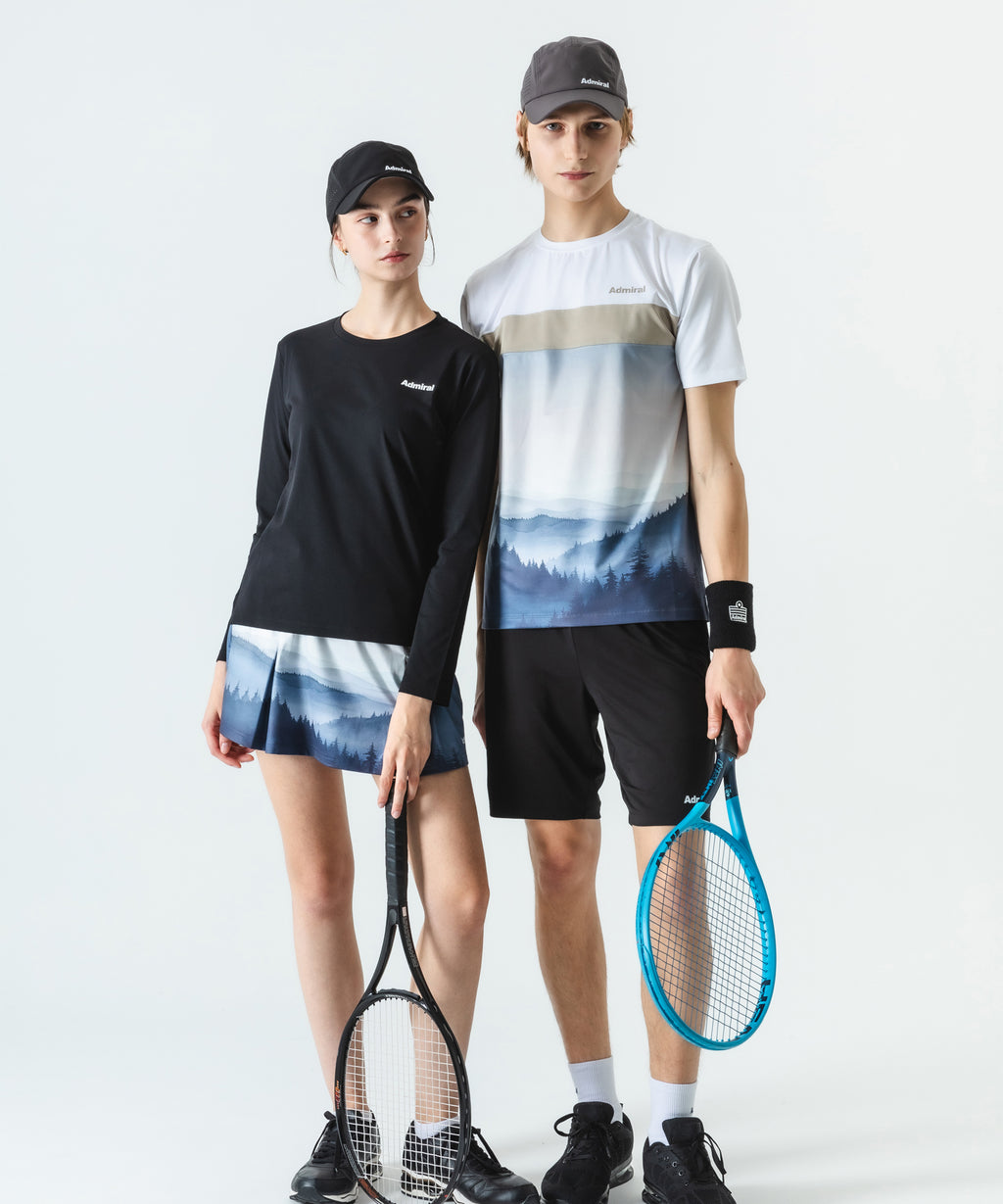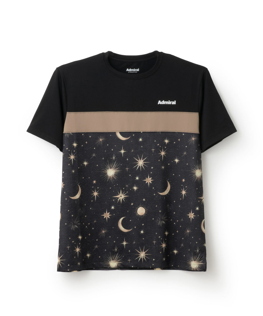 ・大胆な柄使いのアクセントに、顔周りに無地切替を施しメリハリを出した定番のライン切替Tシャツ。 ・吸水速乾とUVカットの機能を持ちながら、とろみのある抜群の伸縮性で しなやかな着心地を実現する定番のストレッチ天竺素材を使用。