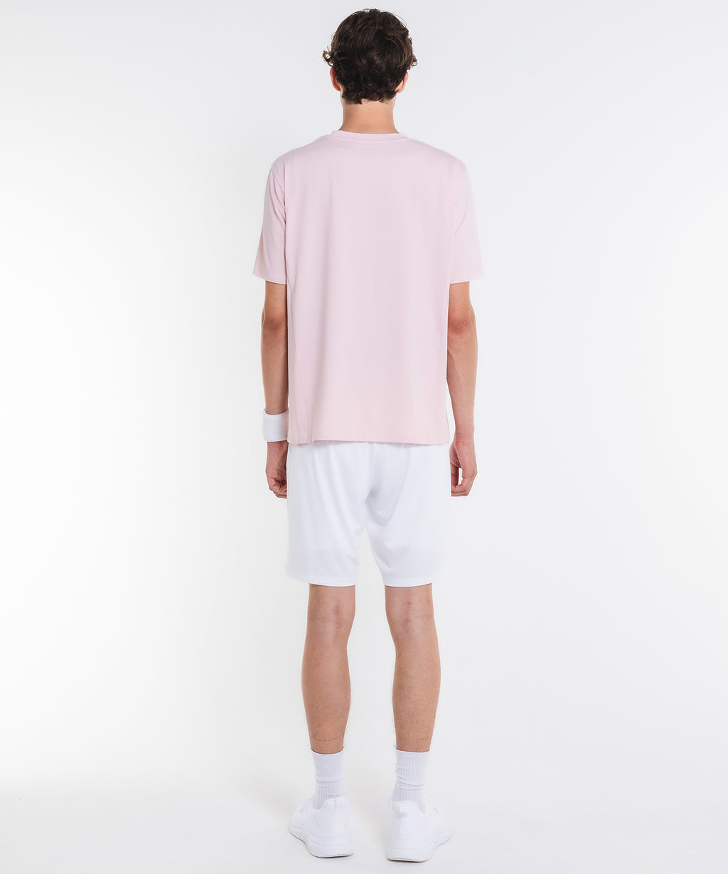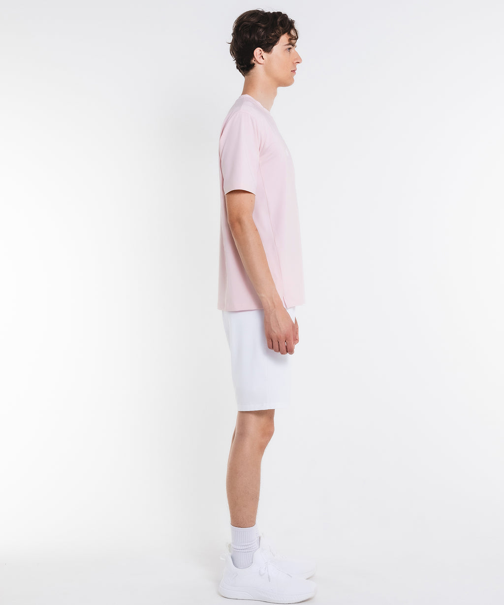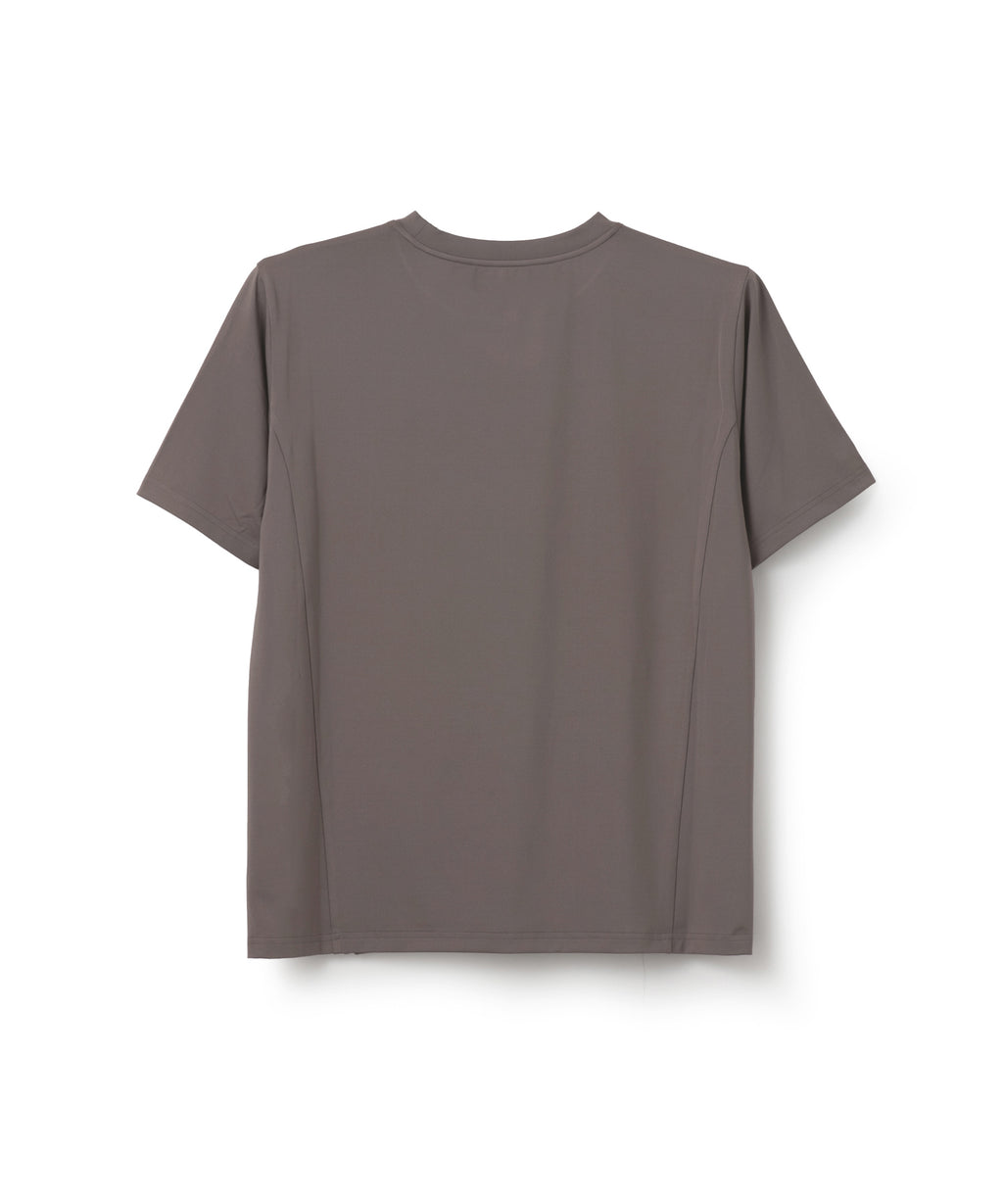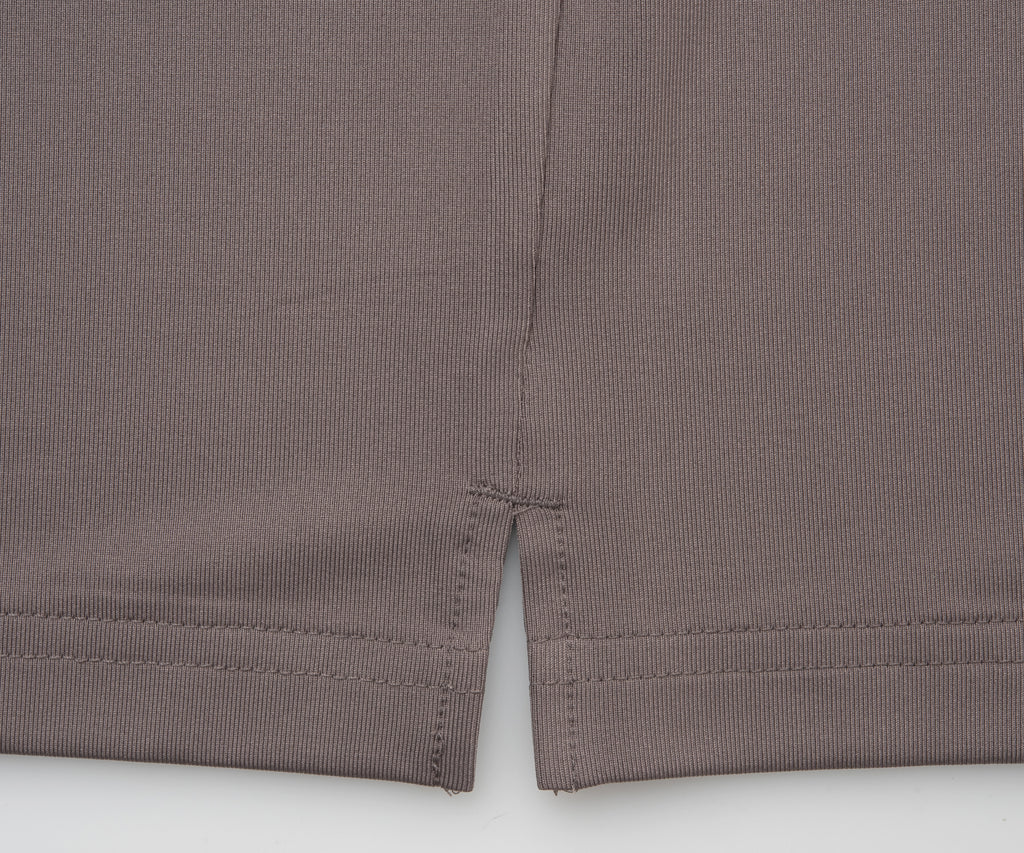 吸水速乾とUVカットの機能を持ちながら抜群の伸縮性でしなやかな着心地を実現する定番のストレッチ天竺素材を使用。裾に向かった切替に施されたスリットデザインがすっきりとした印象。