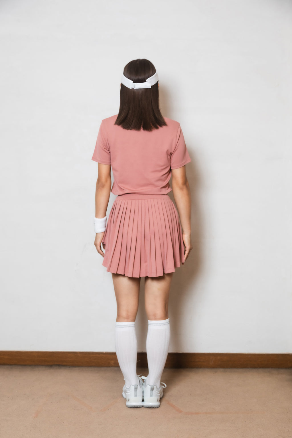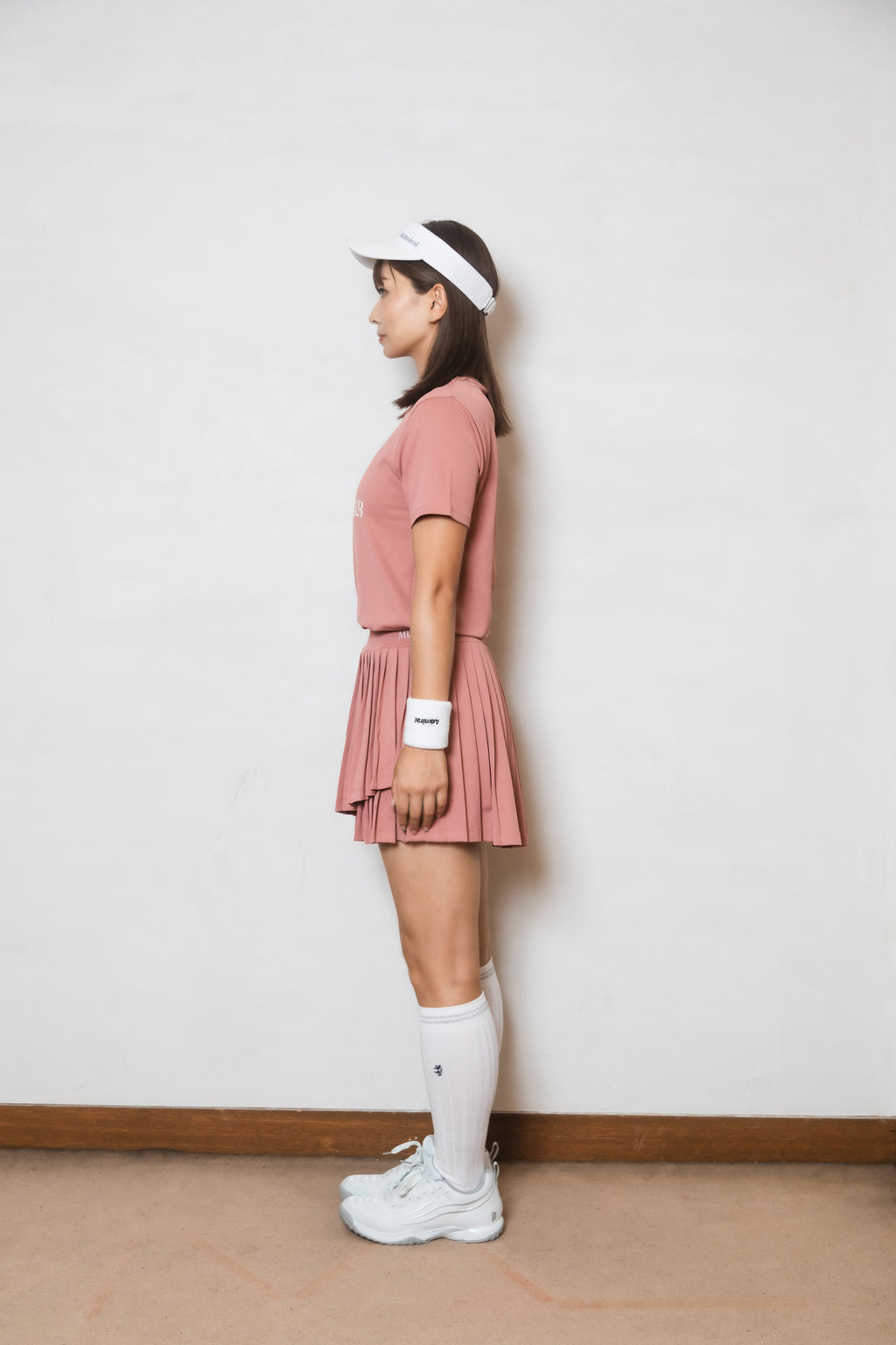 クロスするラケットが描かれたクラシカルなエンブレムロゴが大胆にプリントされた半袖Tシャツ。トップスインして着用する想定のややタイトめなサイジング。生地に採用された機能素材は吸水速乾性・防透け性・UVカット効果に加え、再生プラスチックを100%使用しており、着心地だけでなく環境にも配慮されたリサイクル素材を使用。
