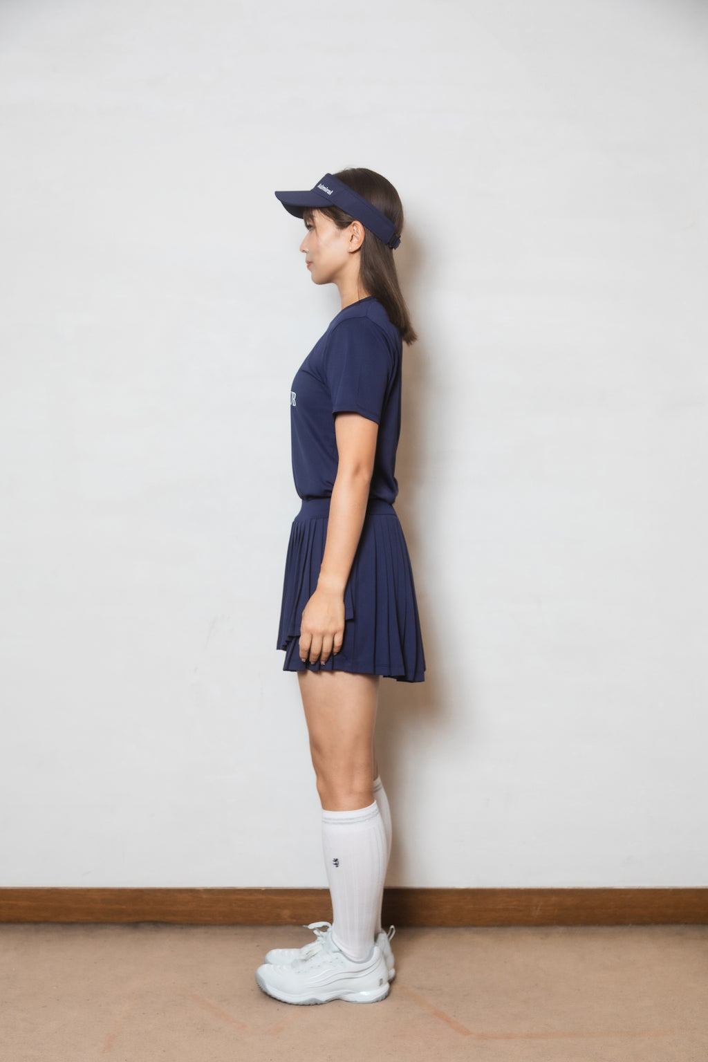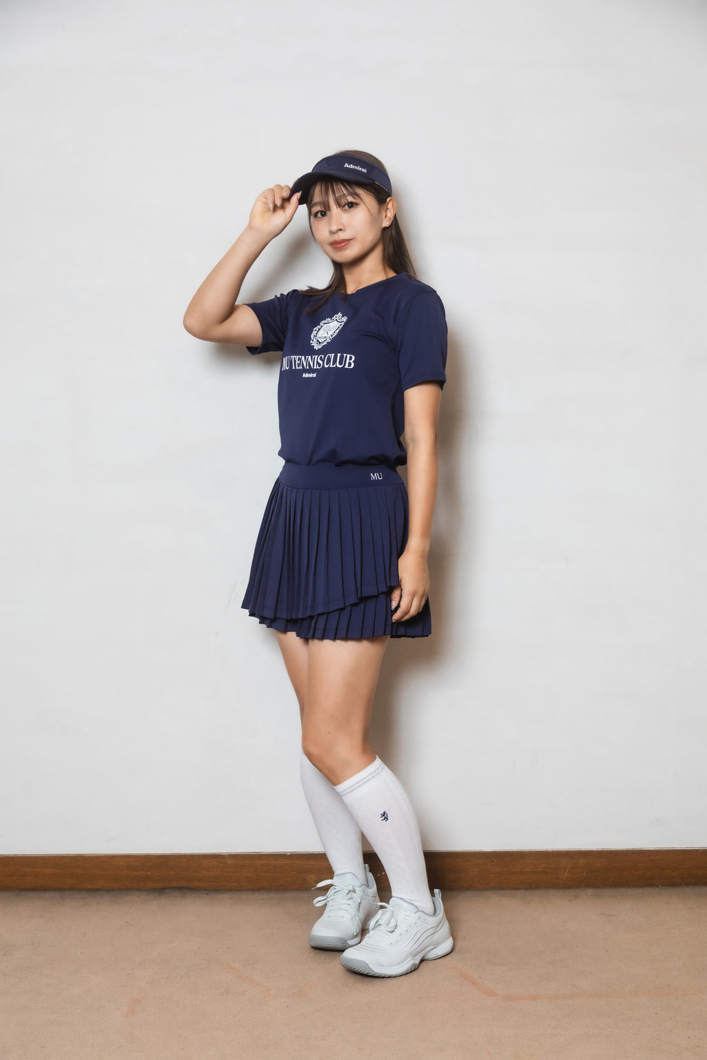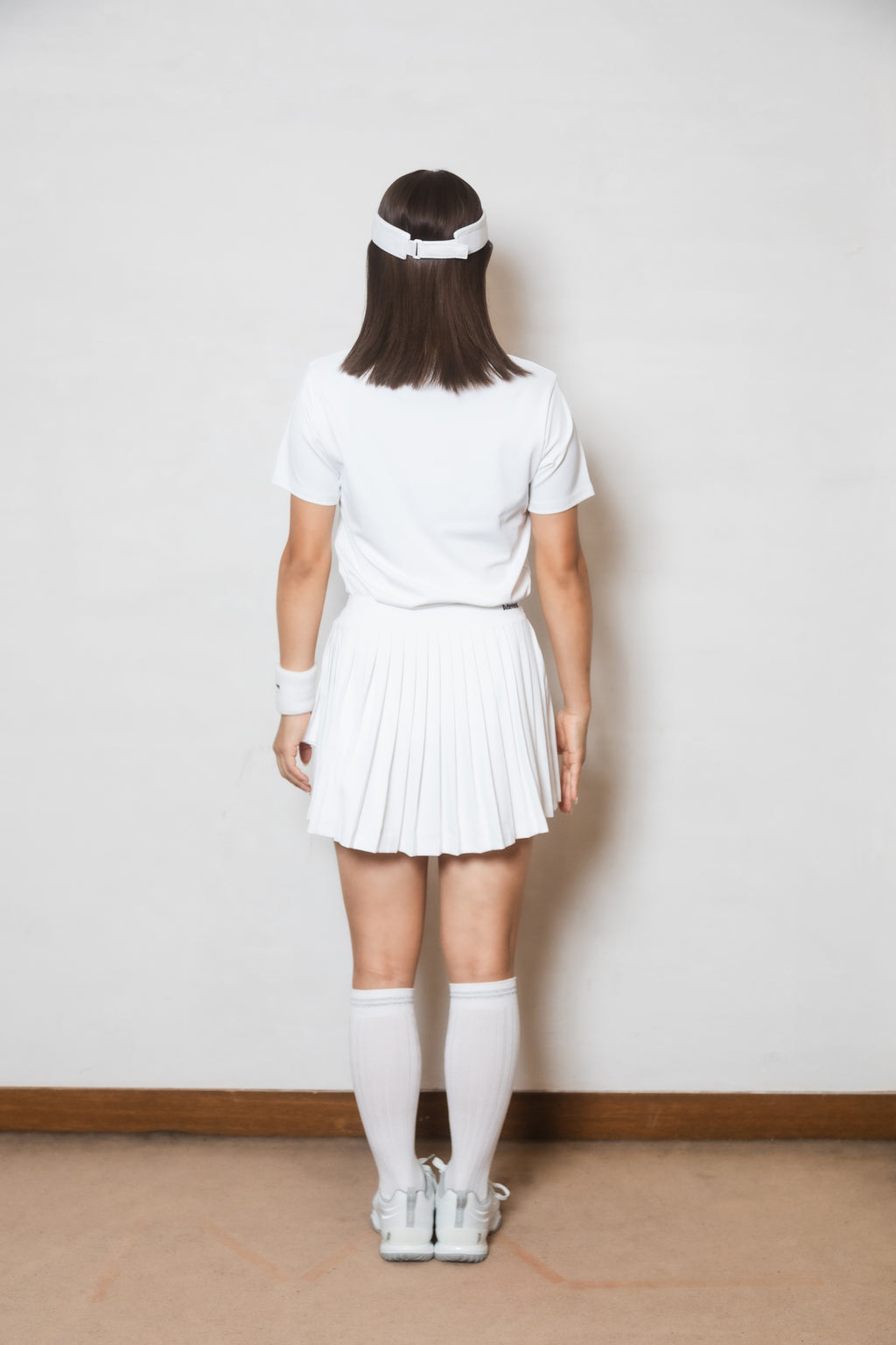 ヘムラインがアシンメトリーにクロスした、動きのあるシルエットが存在感のあるプリーツスコート。後丈が長めのデザインでヒップをカバーするサイジングに。前後のベルトに施されたロゴ刺繍がワンポイント。生地に採用された機能素材は吸水速乾性・防透け性・UVカット効果に加え、再生プラスチックを100%使用しており、着心地だけでなく環境にも配慮されたリサイクル素材を使用。※同素材のインナーショーツ(ショーツ左脇のみポケット)、右脇コンシールファスナー着脱可能、ウエスト紐無しのデザイン。