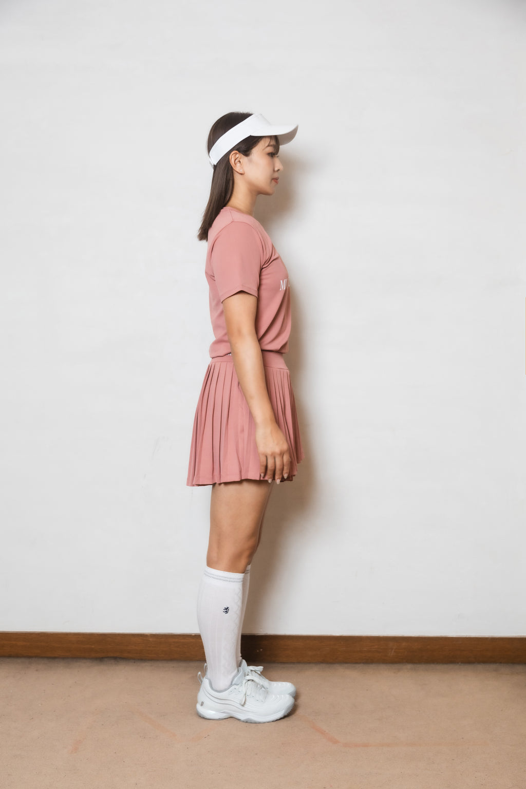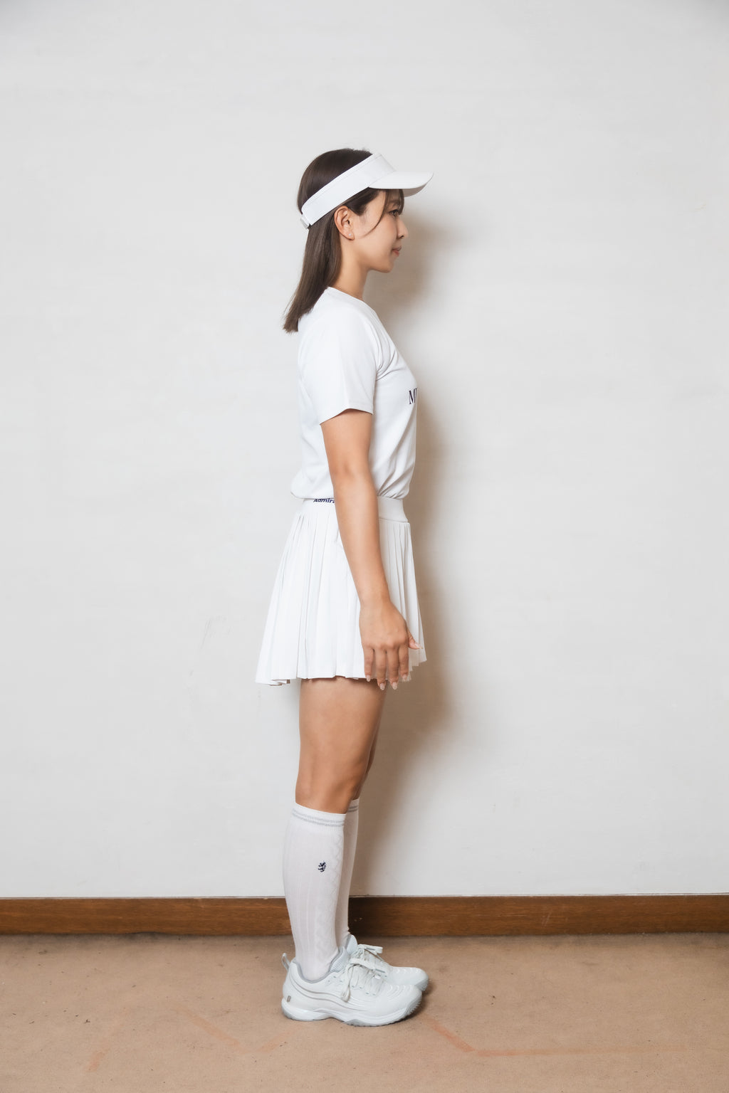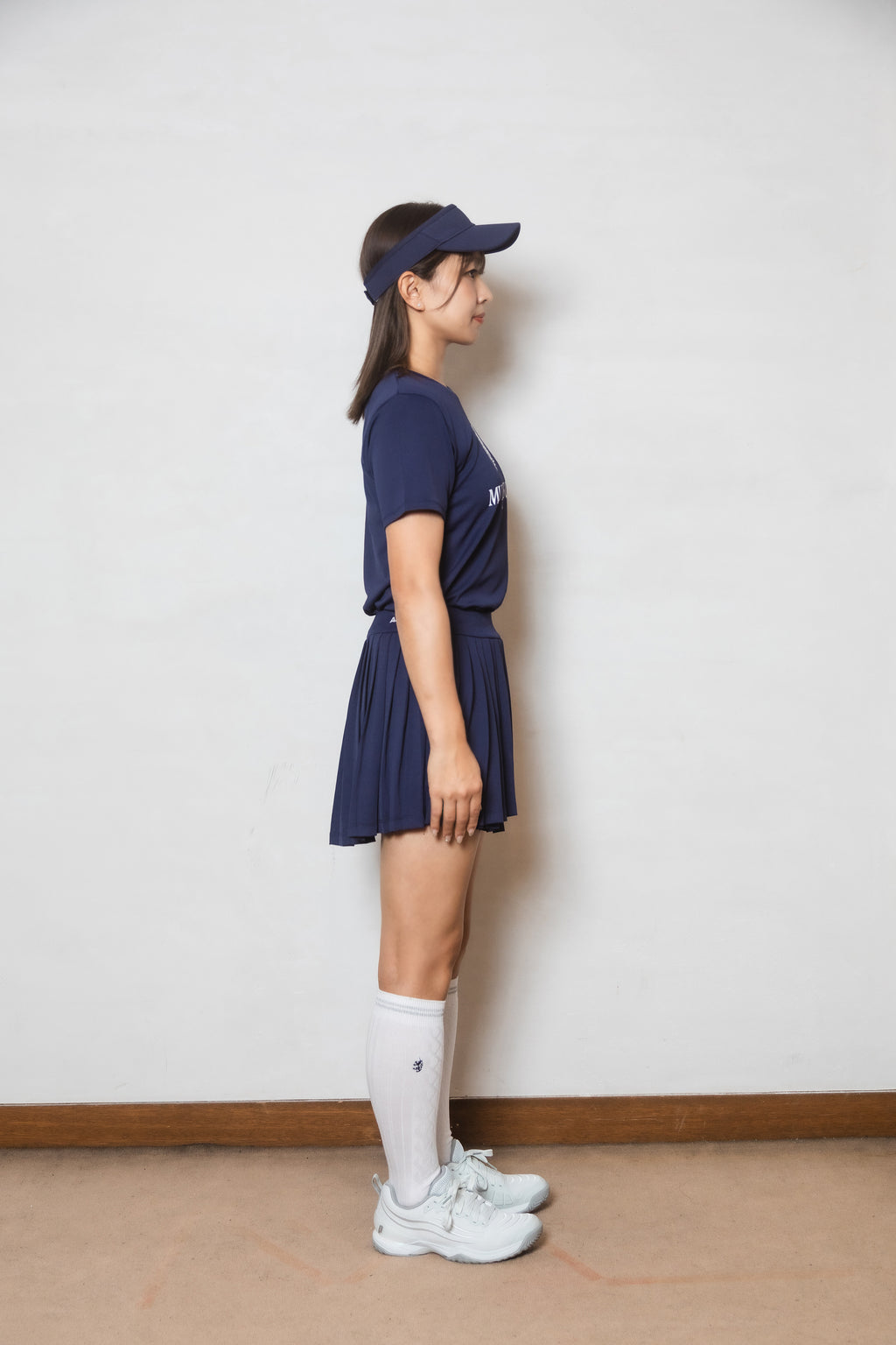 ヘムラインがアシンメトリーにクロスした、動きのあるシルエットが存在感のあるプリーツスコート。後丈が長めのデザインでヒップをカバーするサイジングに。前後のベルトに施されたロゴ刺繍がワンポイント。生地に採用された機能素材は吸水速乾性・防透け性・UVカット効果に加え、再生プラスチックを100%使用しており、着心地だけでなく環境にも配慮されたリサイクル素材を使用。※同素材のインナーショーツ(ショーツ左脇のみポケット)、右脇コンシールファスナー着脱可能、ウエスト紐無しのデザイン。